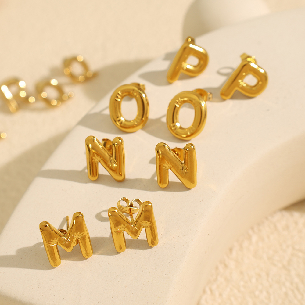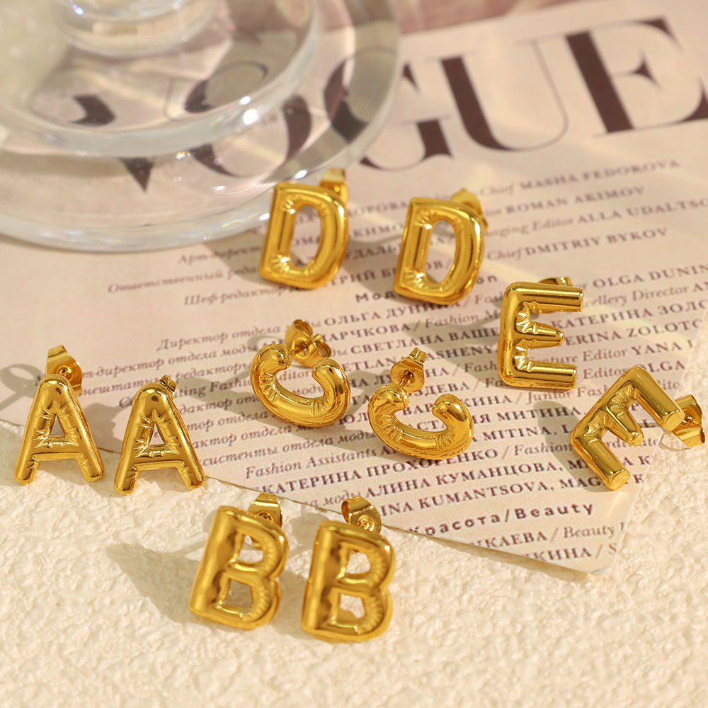 Boucle en acier inoxydable, Acier inoxydable 304, Lettre d’alphabet, Plaqué or 18K, bijoux de mode & styles différents pour le choix & pour femme, Vendu par paire