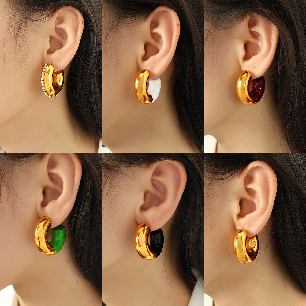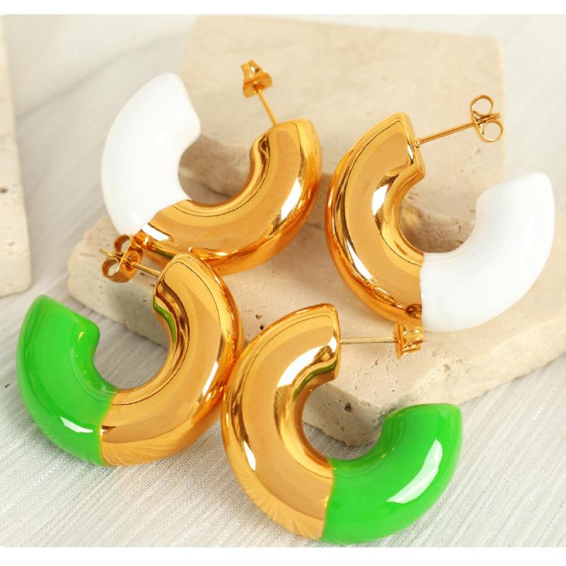 Boucle en acier inoxydable, Acier inoxydable 304, Plaqué or 18K, bijoux de mode & pour femme & autocollant époxyde, plus de couleurs à choisir, Vendu par paire