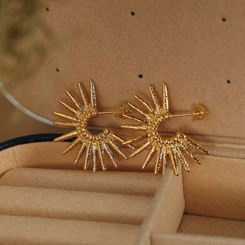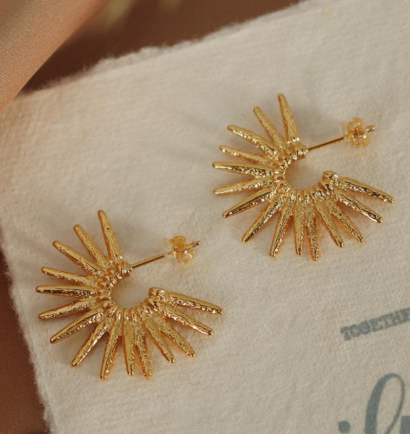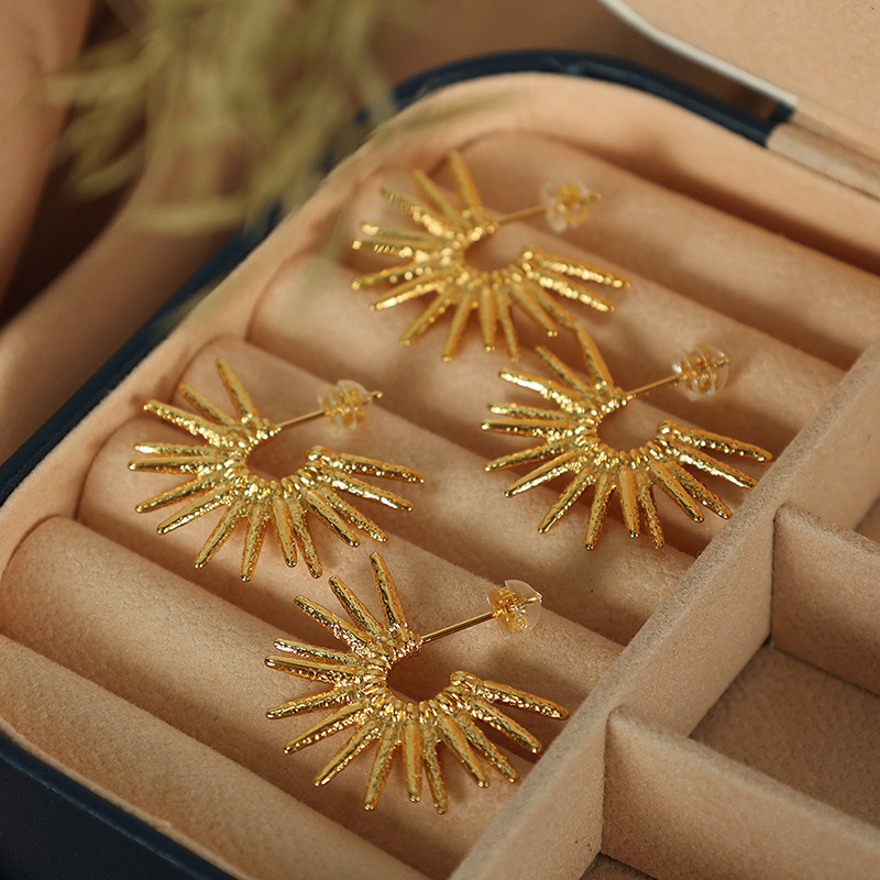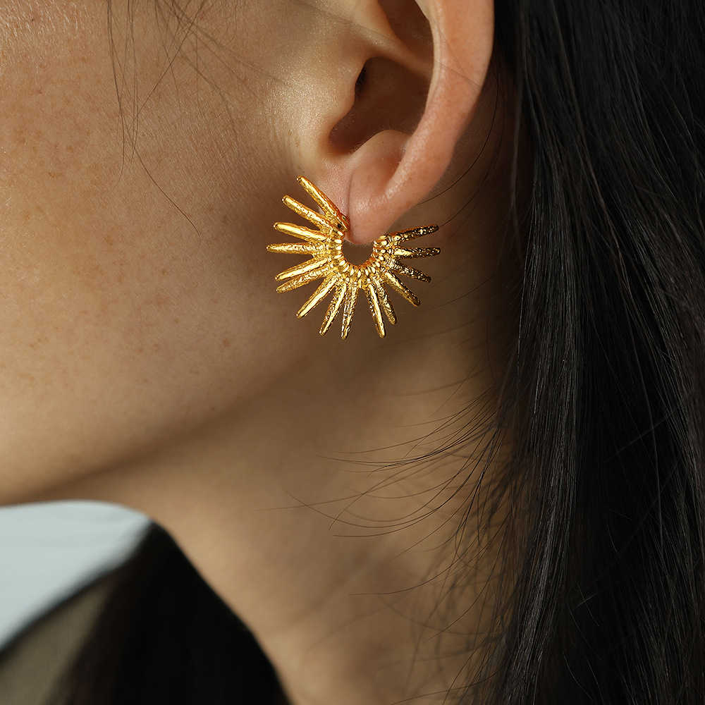 Boucle en acier inoxydable, Acier inoxydable 304, fleur, Placage, bijoux de mode & pour femme, doré, 30x19mm, Vendu par paire