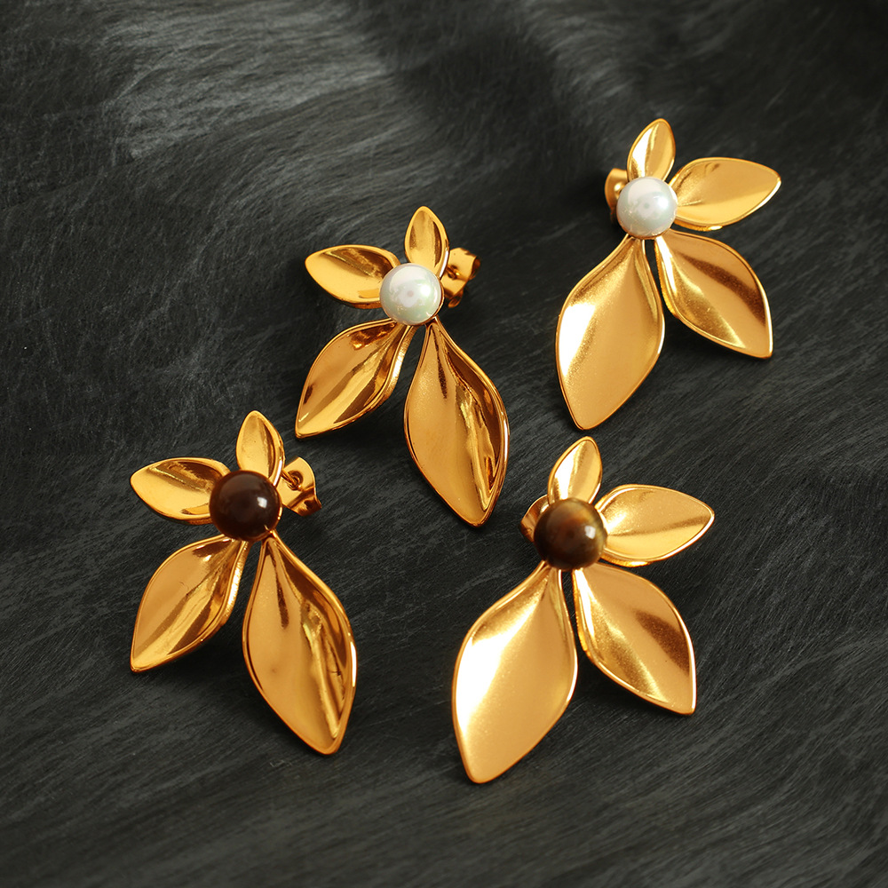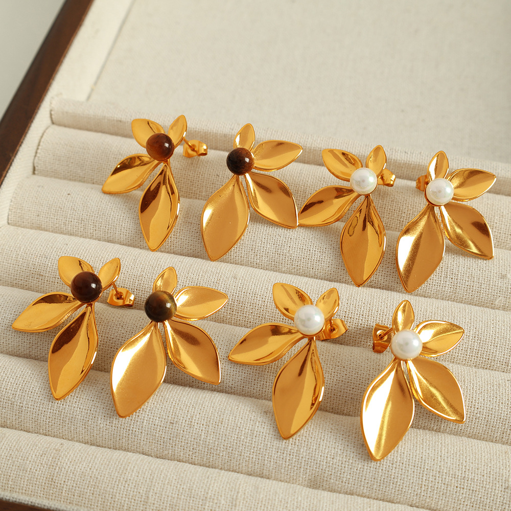 Boucle en acier inoxydable, Acier inoxydable 304, avec Pierre de verre, fleur, Placage, bijoux de mode & différents matériaux pour le choix & pour femme, doré, Vendu par paire