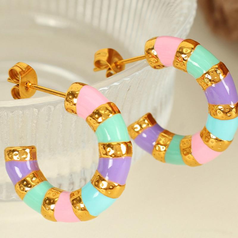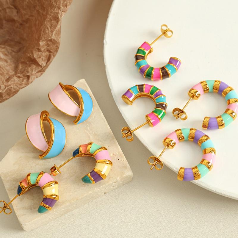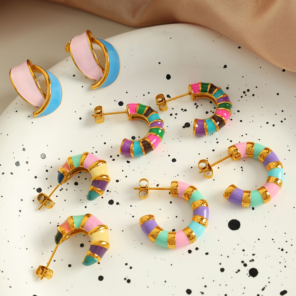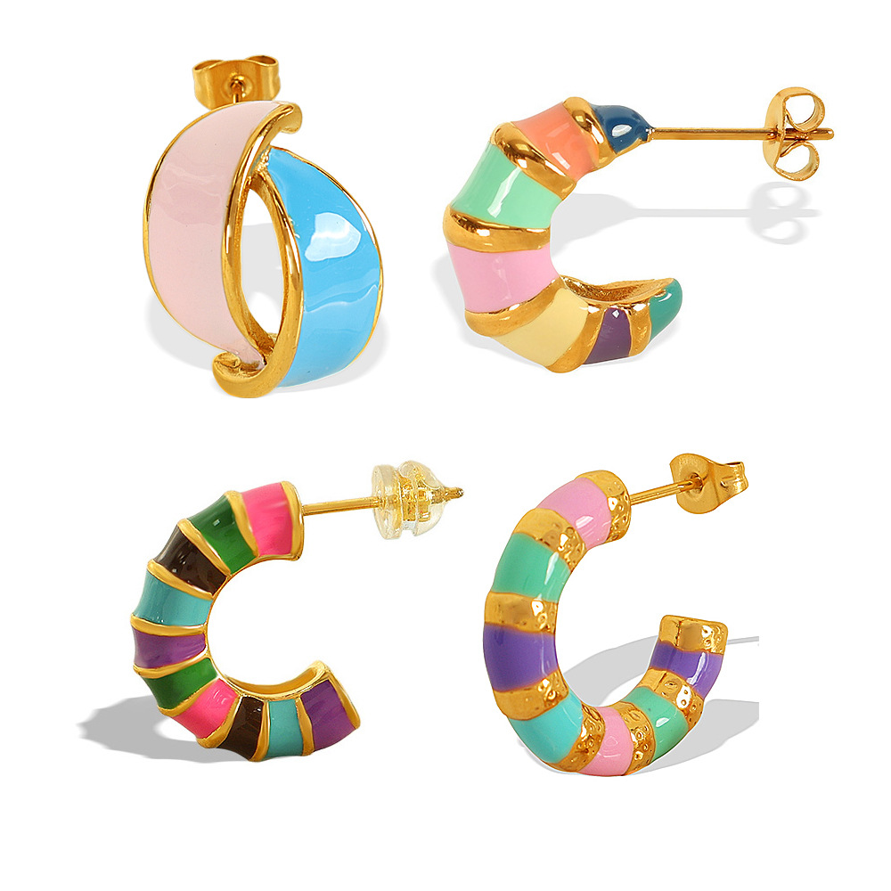 Boucle en acier inoxydable, Acier inoxydable 304, Placage de couleur d'or, styles différents pour le choix & pour femme & émail, multicolore, Vendu par paire