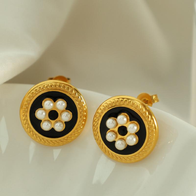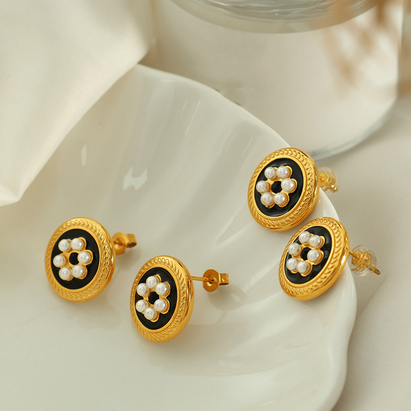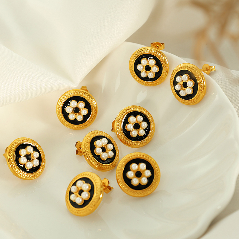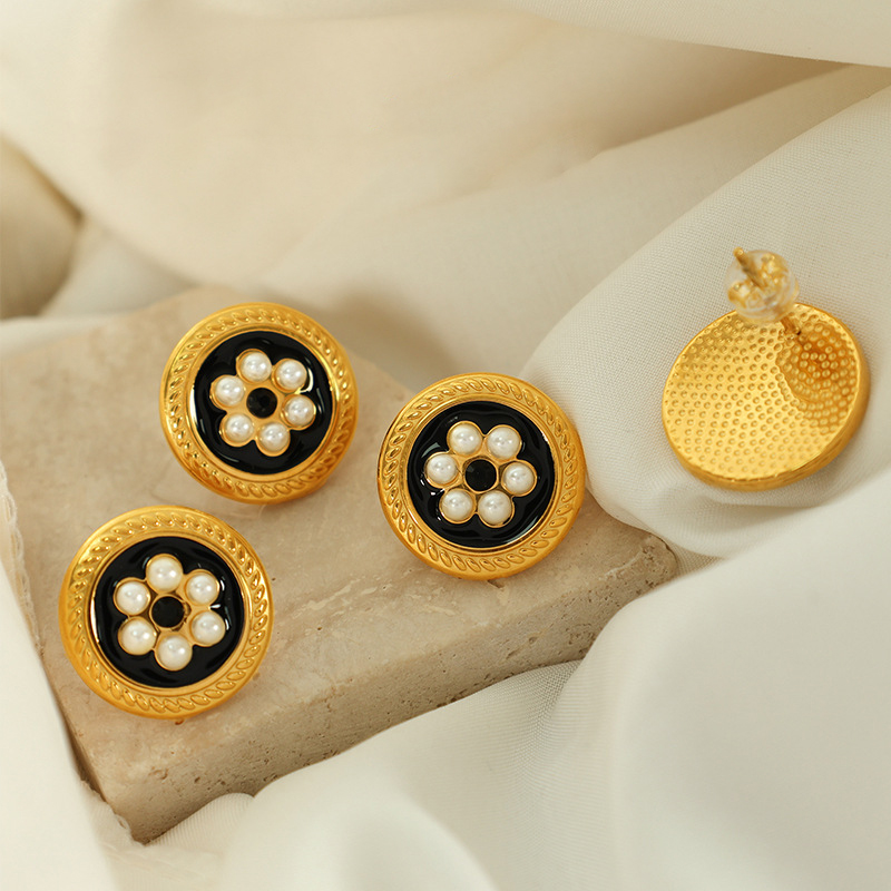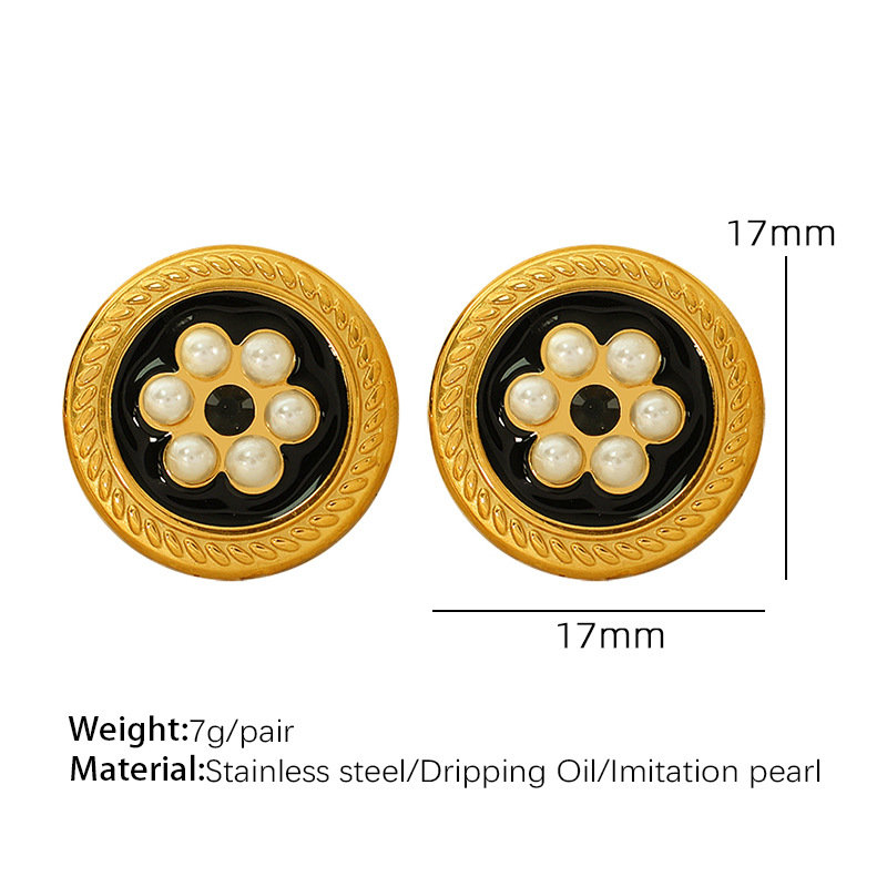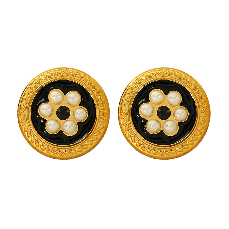 Boucle en acier inoxydable, Acier inoxydable 304, avec perle de plastique, Rond, Placage de couleur d'or, bijoux de mode & pour femme & émail, Vendu par paire