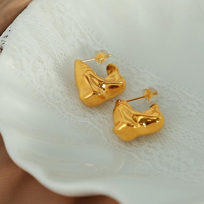 Boucle en acier inoxydable, Acier inoxydable 304, Plaqué or 18K, bijoux de mode & pour femme, 16x19mm, Vendu par paire
