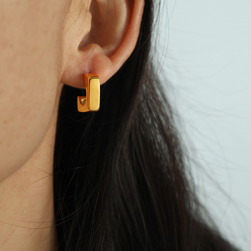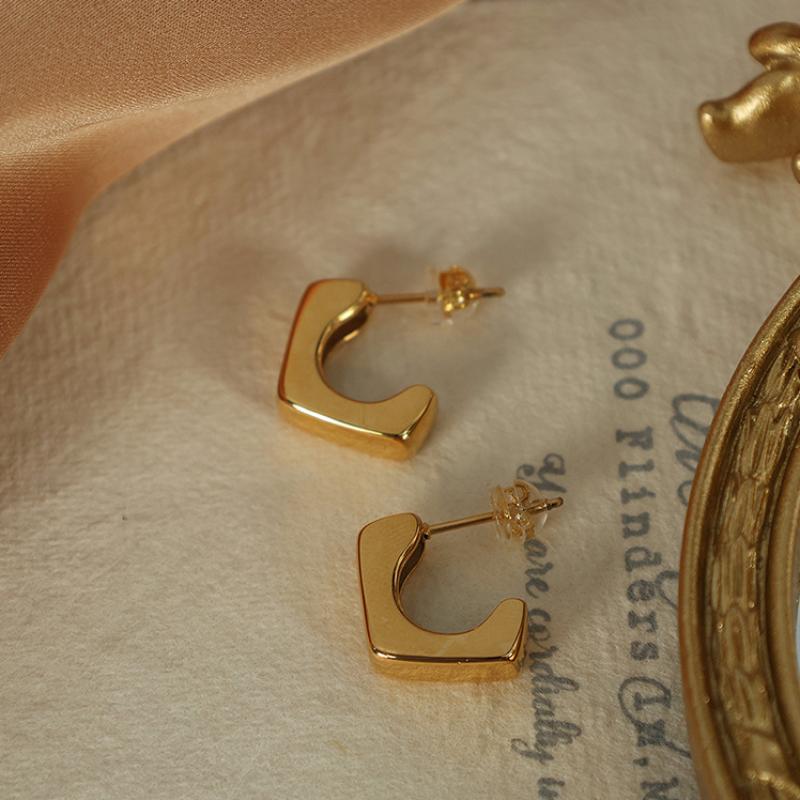 Boucle en acier inoxydable, Acier inoxydable 304, Placage, bijoux de mode & pour femme, doré, 14x14mm, Vendu par paire