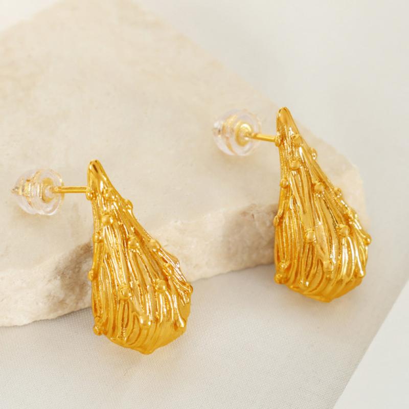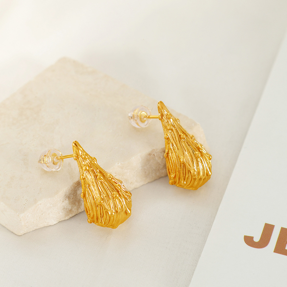 Boucle en acier inoxydable, Acier inoxydable 304, larme, Placage, bijoux de mode & pour femme, doré, Vendu par paire