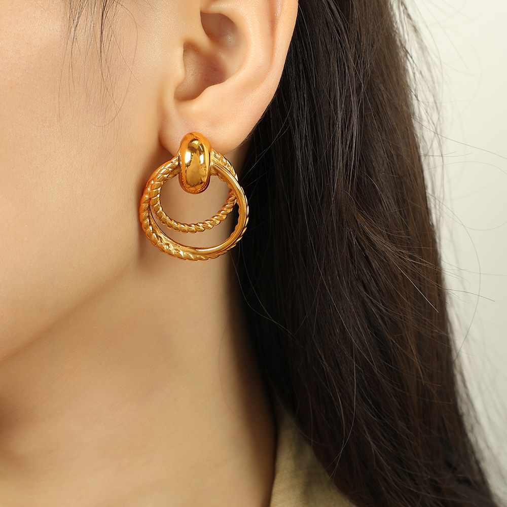 Boucle en acier inoxydable, Acier inoxydable 304, Placage, bijoux de mode & pour femme & creux, doré, Vendu par paire