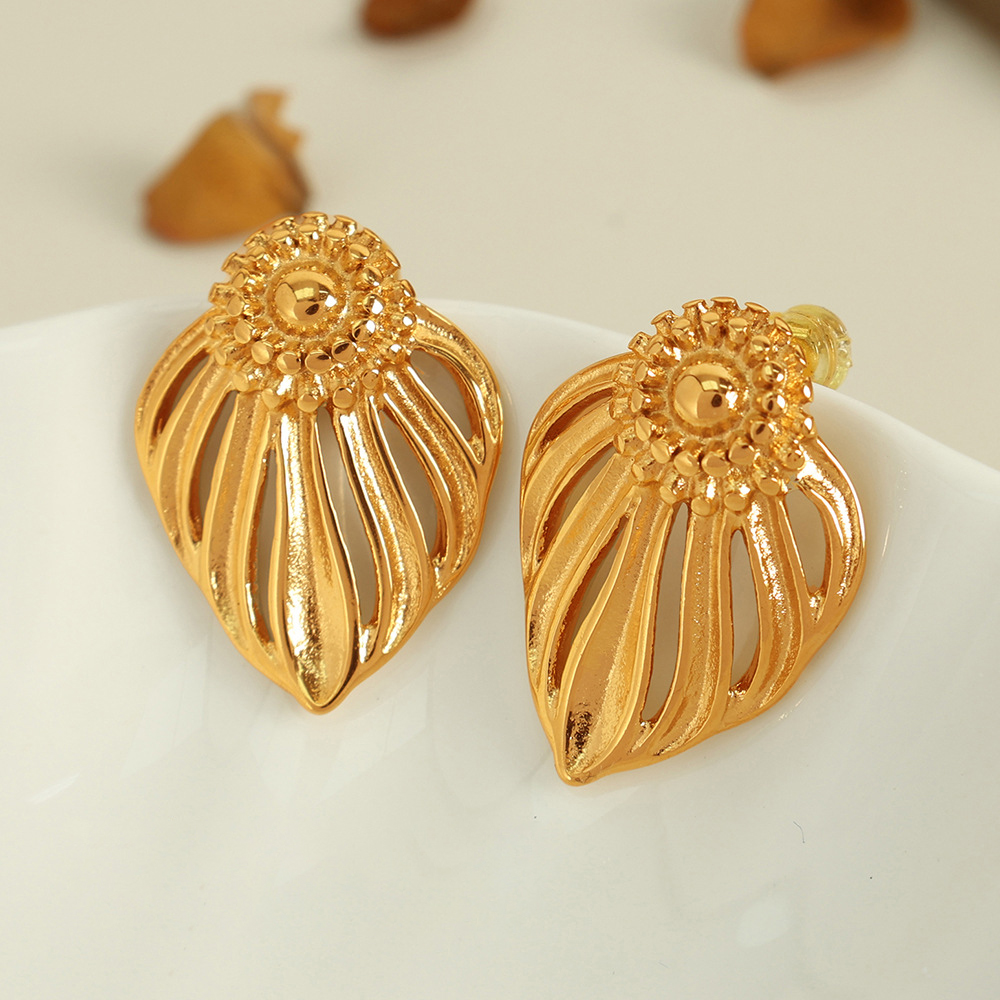 Boucle en acier inoxydable, Acier inoxydable 304, feuille, Placage, bijoux de mode & pour femme & creux, doré, Vendu par paire