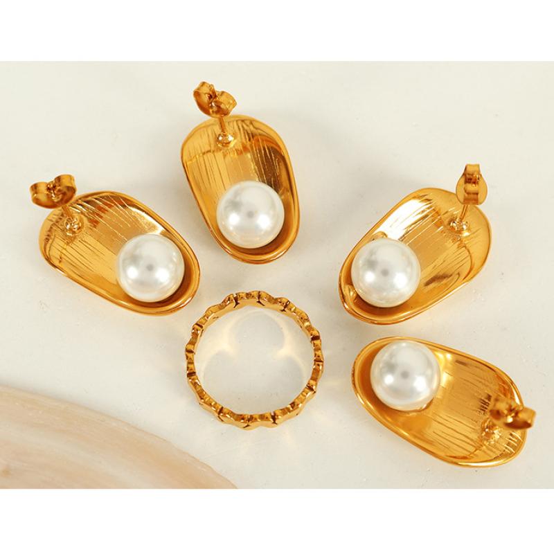 Boucle en acier inoxydable, Acier inoxydable 304, avec Des billes de verre, Plaqué or 18K, bijoux de mode & pour femme, Vendu par paire