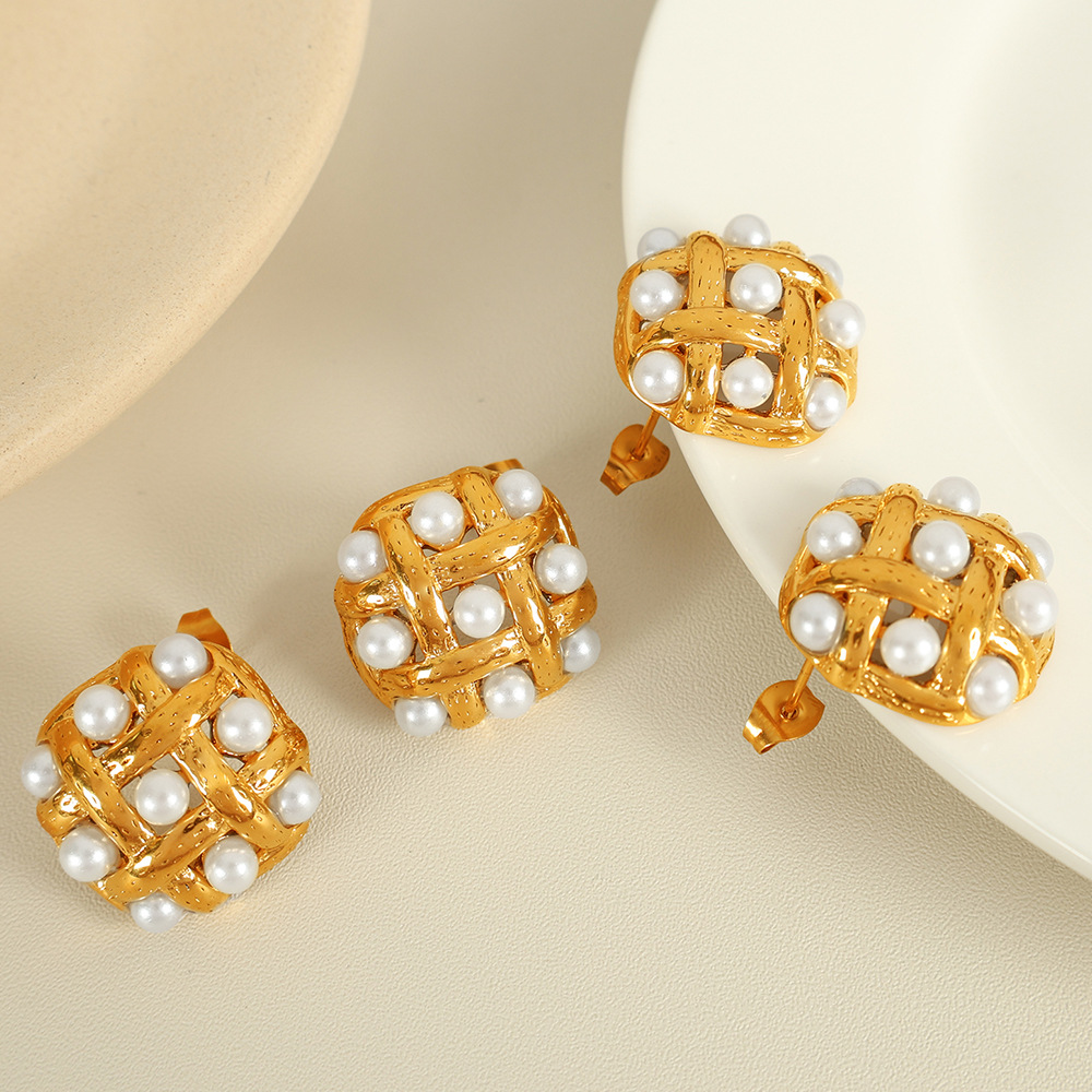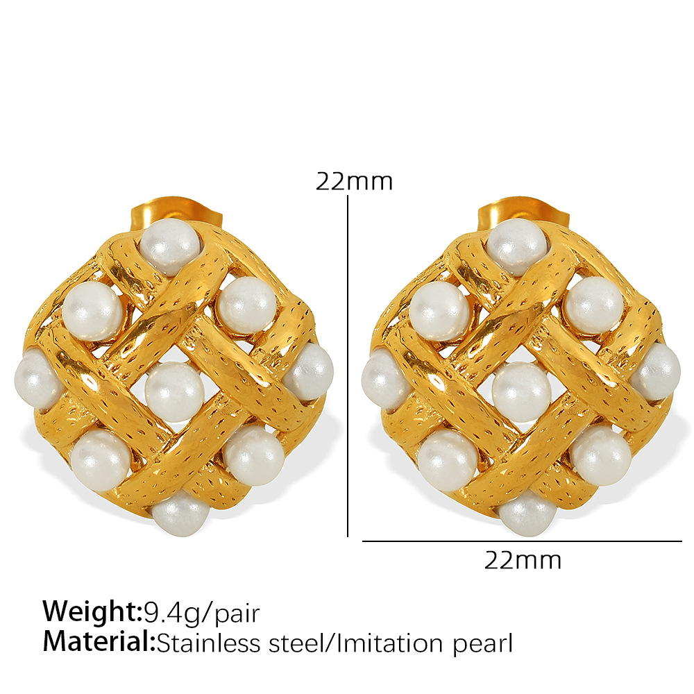 Boucle en acier inoxydable, Acier inoxydable 304, avec perle de plastique, cadre, Placage, bijoux de mode & pour femme & creux, doré, Vendu par paire