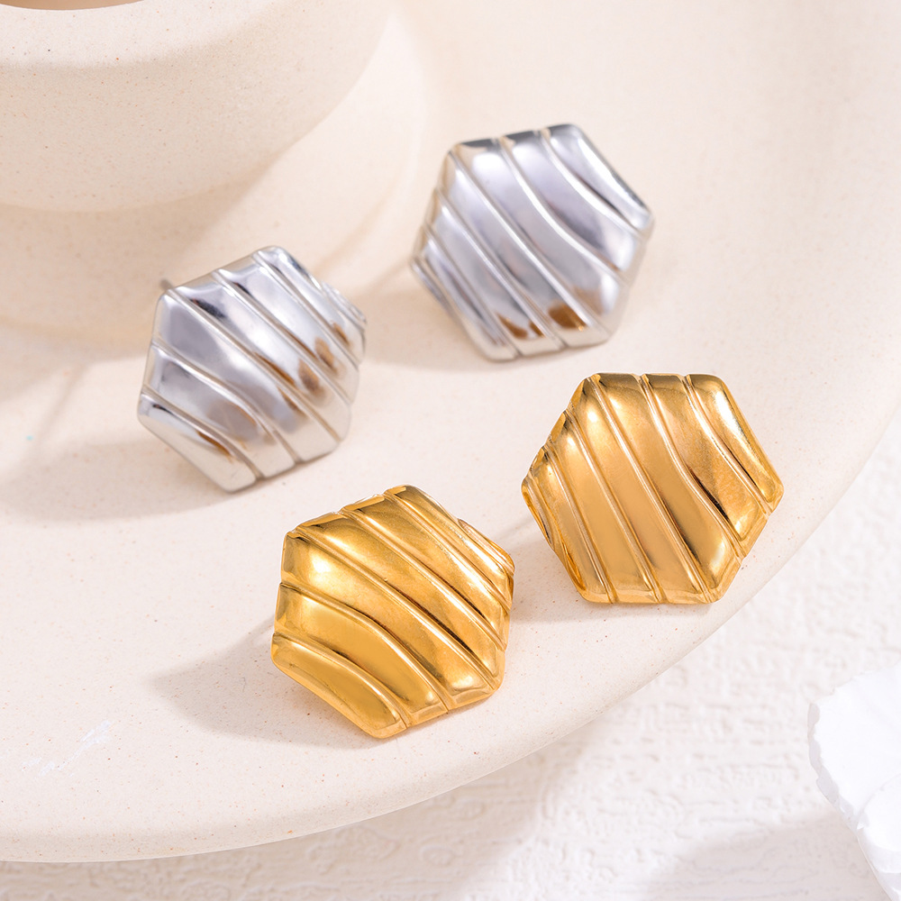Boucle en acier inoxydable, Acier inoxydable 304, hexagone, Placage, bijoux de mode & pour femme, plus de couleurs à choisir, Vendu par paire