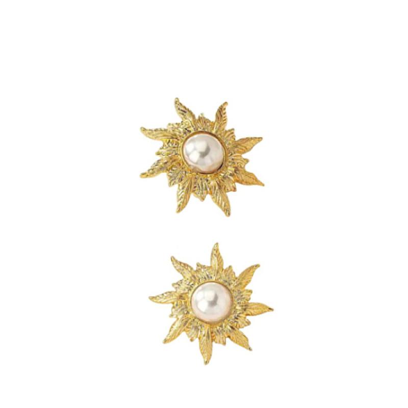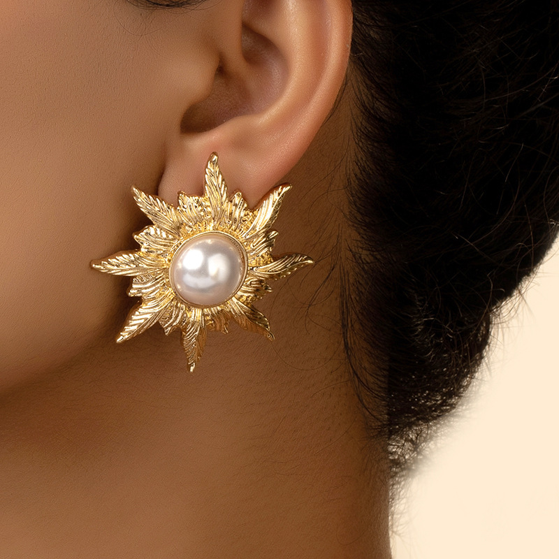 Boucle en acier inoxydable, Acier inoxydable 304, avec perle de plastique, fleur, Plaqué or 18K, bijoux de mode & pour femme, Vendu par paire