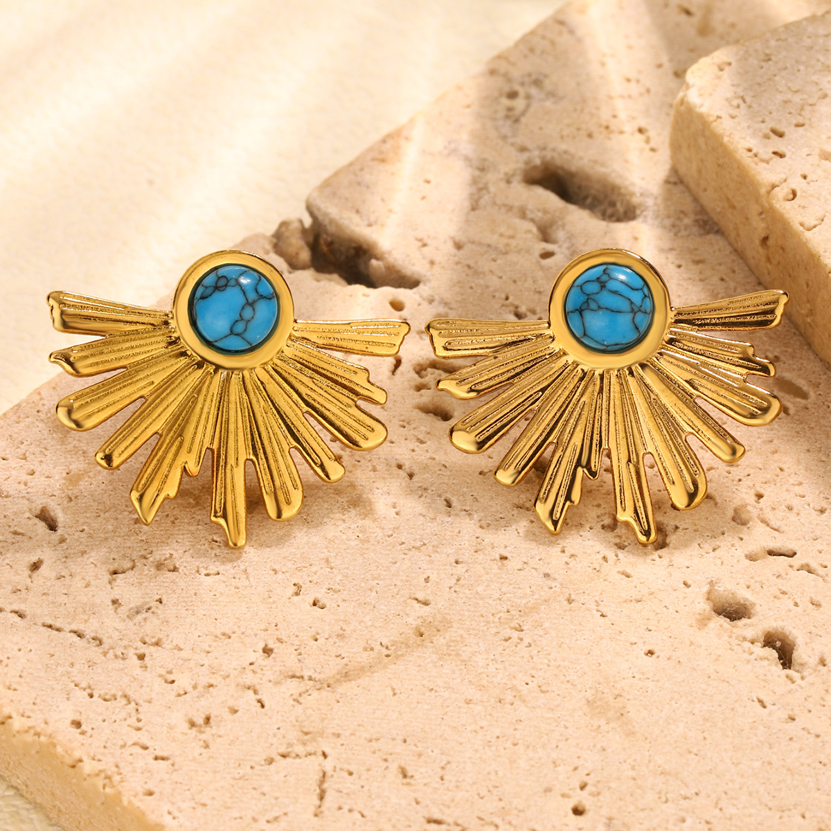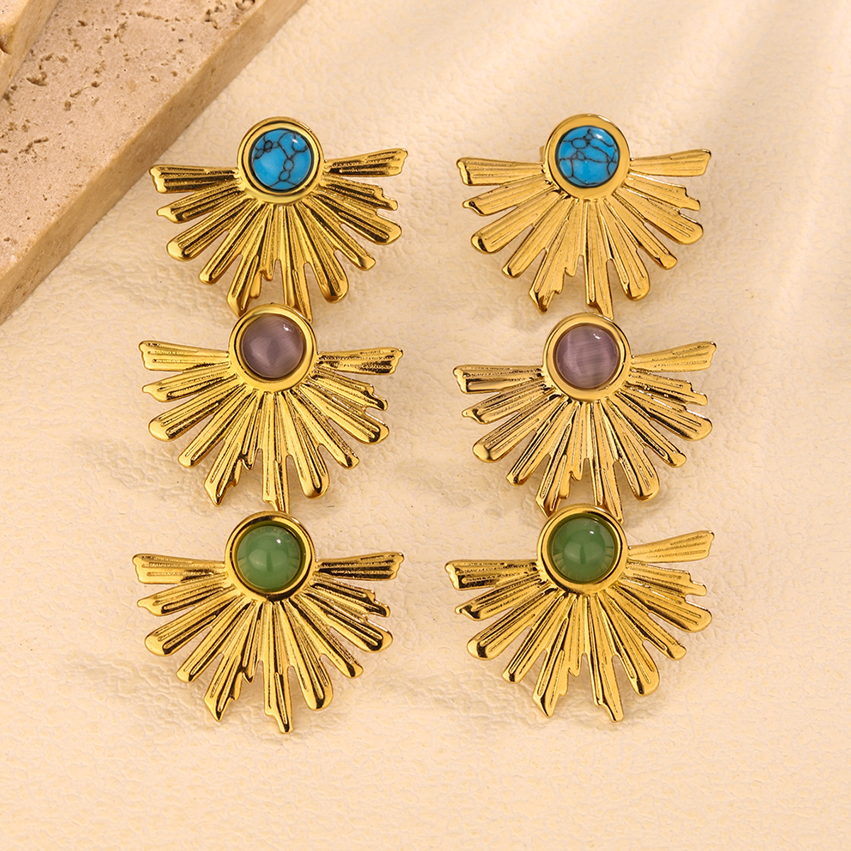 Boucle en acier inoxydable, Acier inoxydable 304, avec Des billes de verre, éventail, Placage de couleur d'or, bijoux de mode & pour femme, plus de couleurs à choisir, Vendu par paire