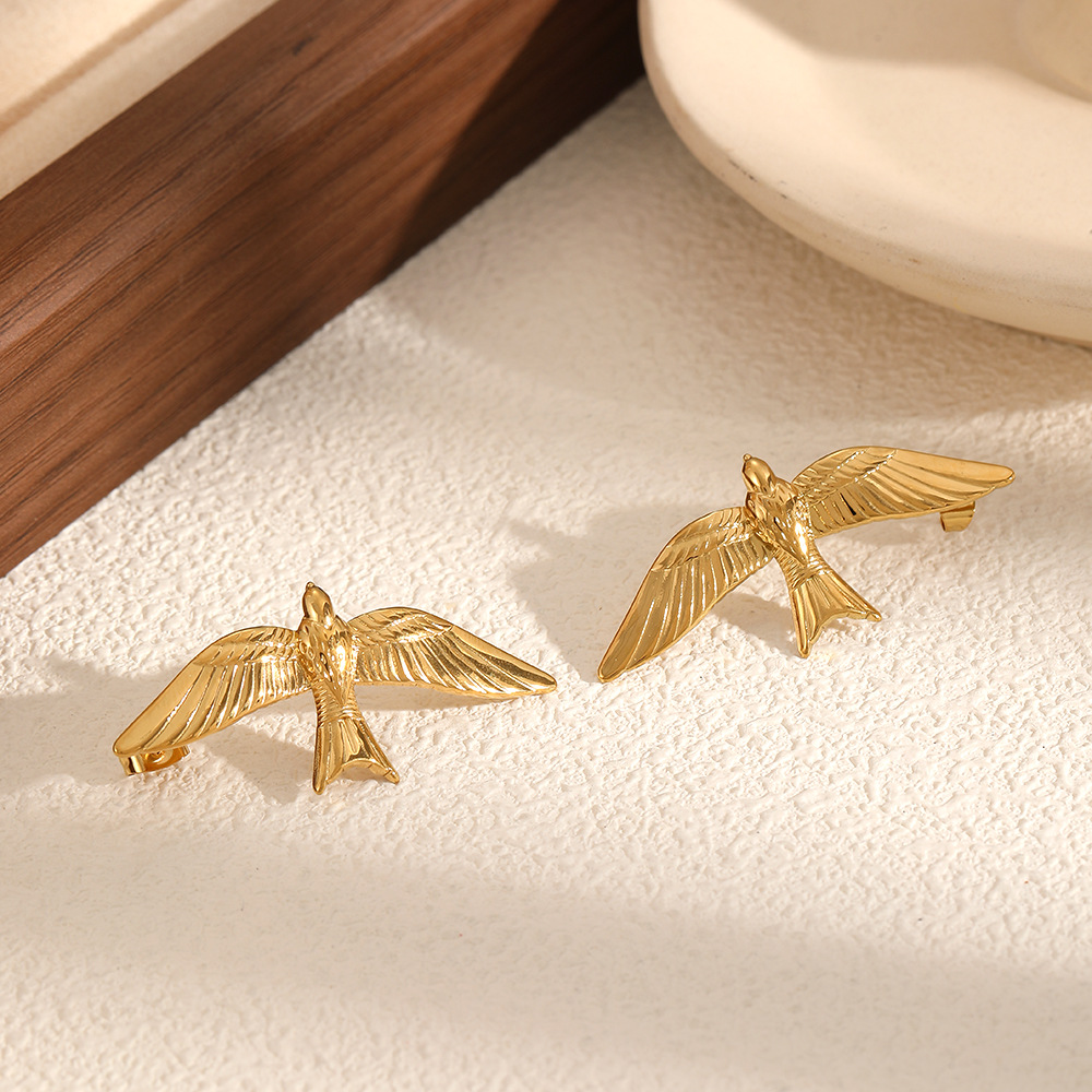 Boucle en acier inoxydable, Acier inoxydable 304, oiseau, Placage de couleur d'or, pour femme, Vendu par paire