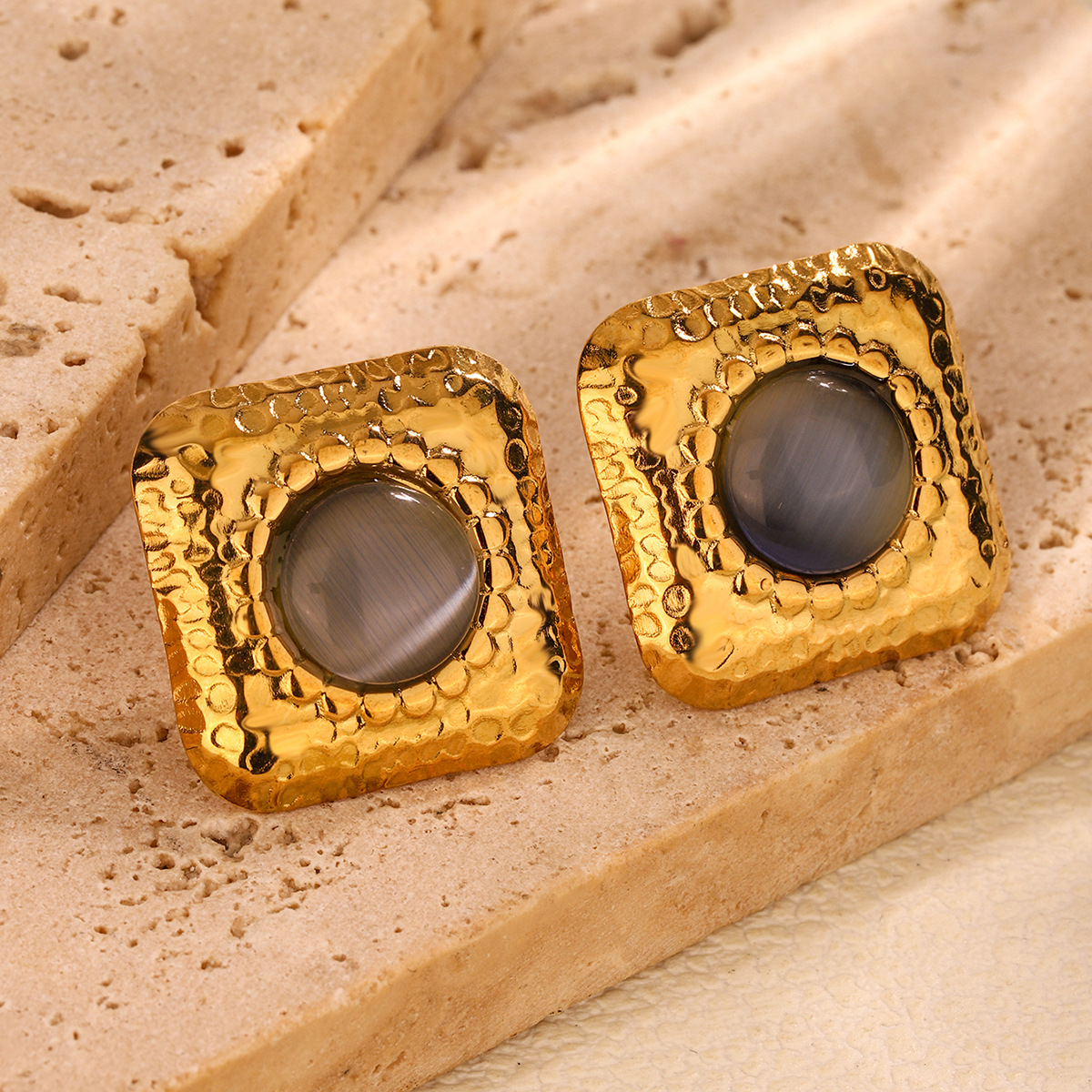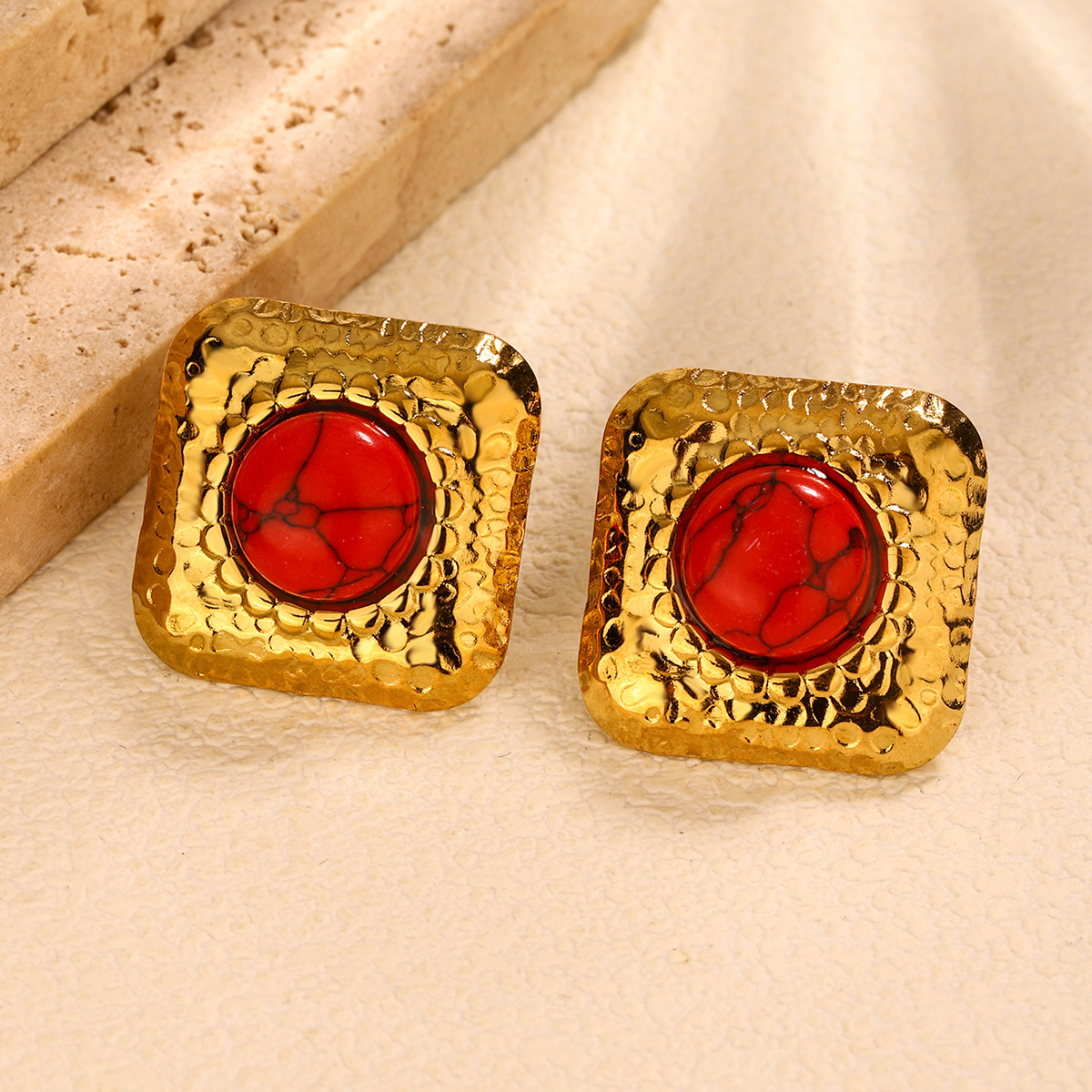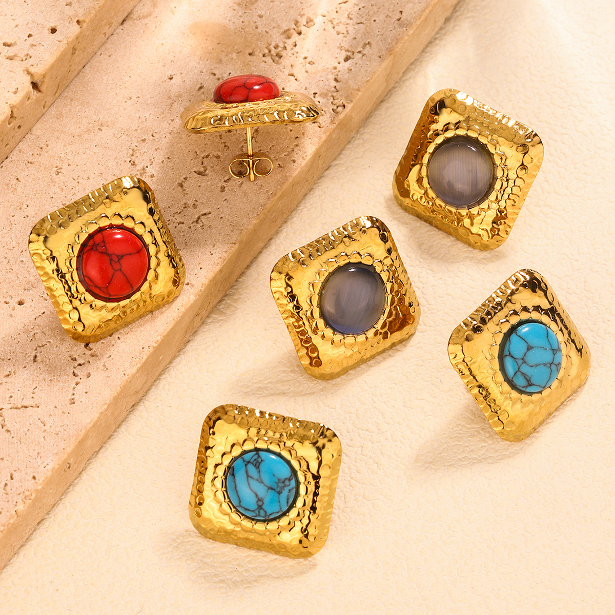 Boucle en acier inoxydable, Acier inoxydable 304, avec turquoise synthétique, cadre, Placage de couleur d'or, bijoux de mode & pour femme, plus de couleurs à choisir, Vendu par paire