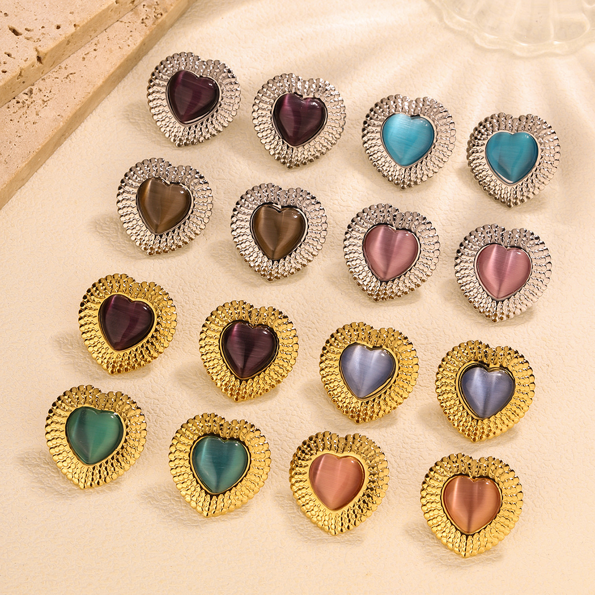 Boucle en acier inoxydable, acier inoxydable puce boucle d'oreille, coeur Vendu par paire