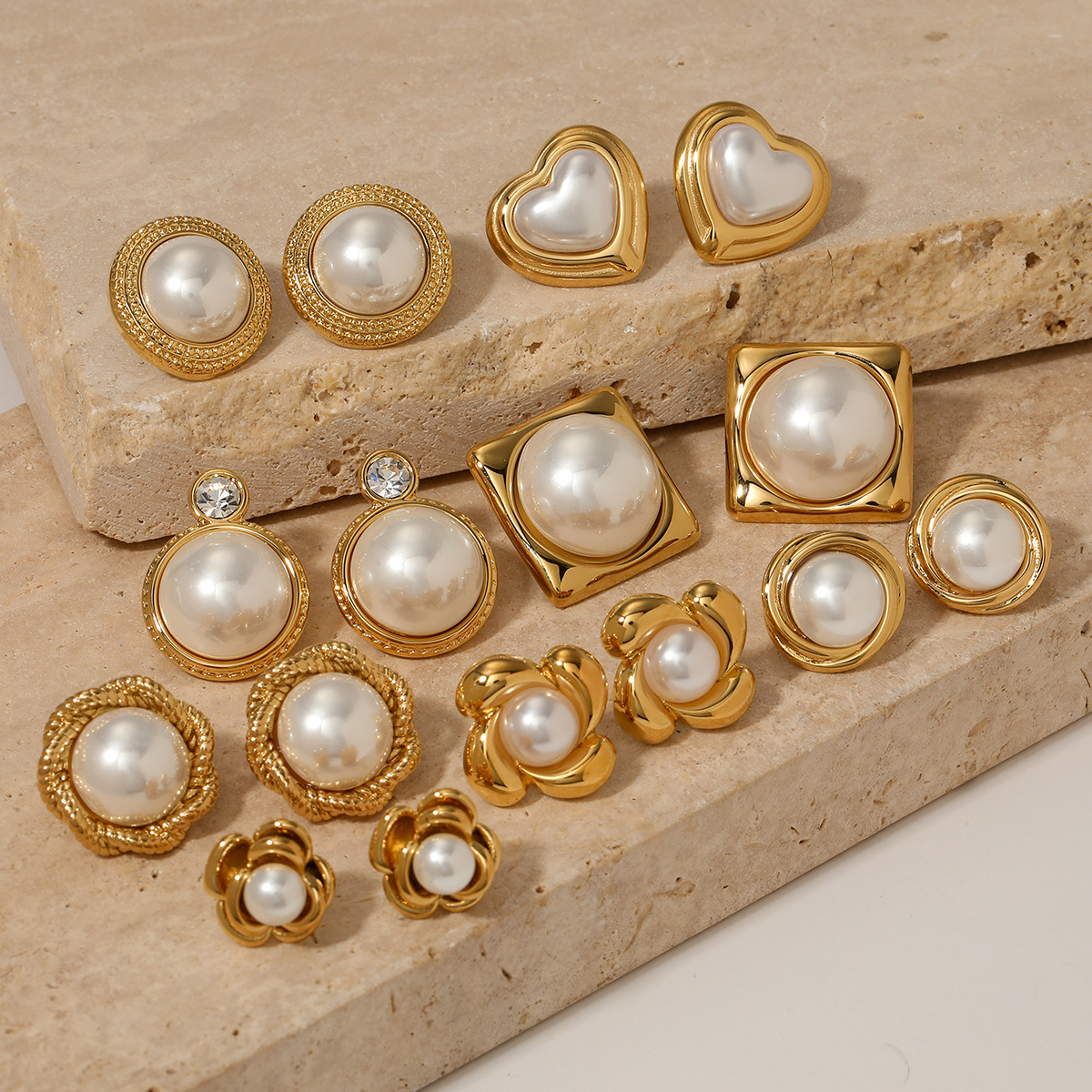 Boucle en acier inoxydable, Acier inoxydable 316, avec perle de plastique, Placage, bijoux de mode & styles différents pour le choix & pour femme, plus de couleurs à choisir, Vendu par paire
