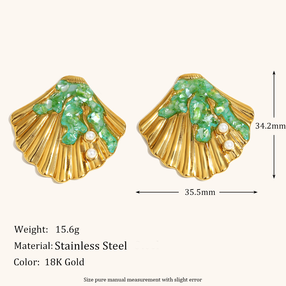Boucle en acier inoxydable, Acier inoxydable 304, avec Pierre naturelle & résine & perle de plastique, poisson, Placage de couleur d'or, bijoux de mode & styles différents pour le choix & émail, plus de couleurs à choisir, Vendu par paire