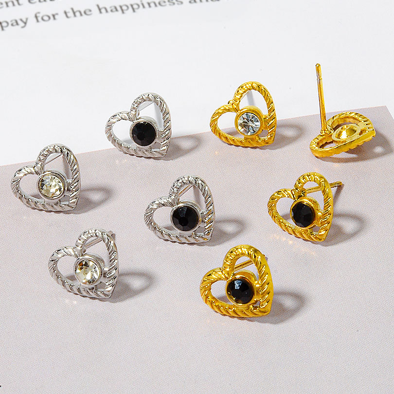 Boucle en acier inoxydable, Acier inoxydable 304, coeur, Placage, pour femme & avec strass & creux, plus de couleurs à choisir, Vendu par paire