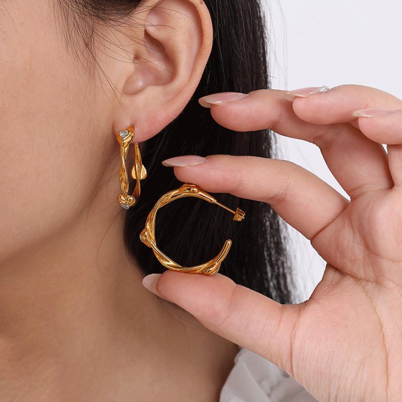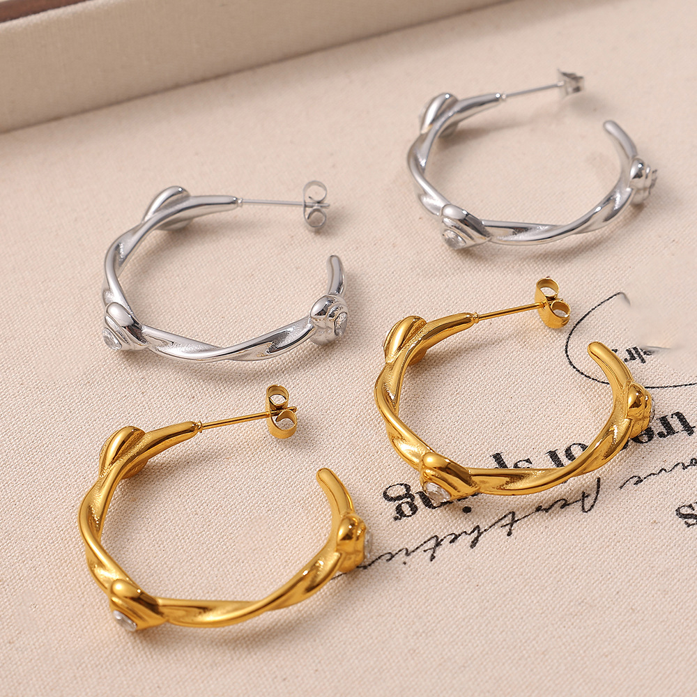 Boucle en acier inoxydable, Acier inoxydable 304, avec zircon cubique, Placage, bijoux de mode & pour femme, plus de couleurs à choisir, Vendu par paire