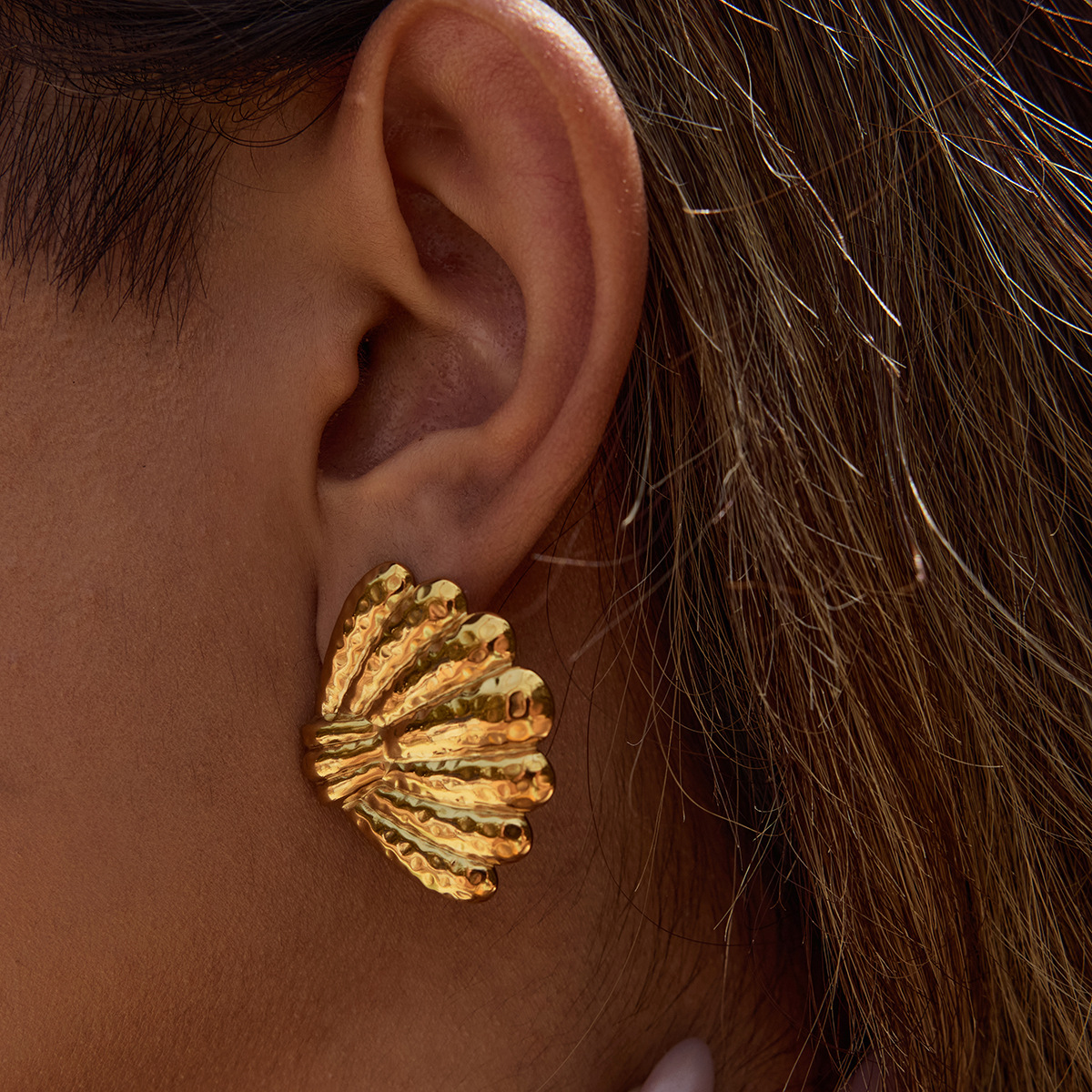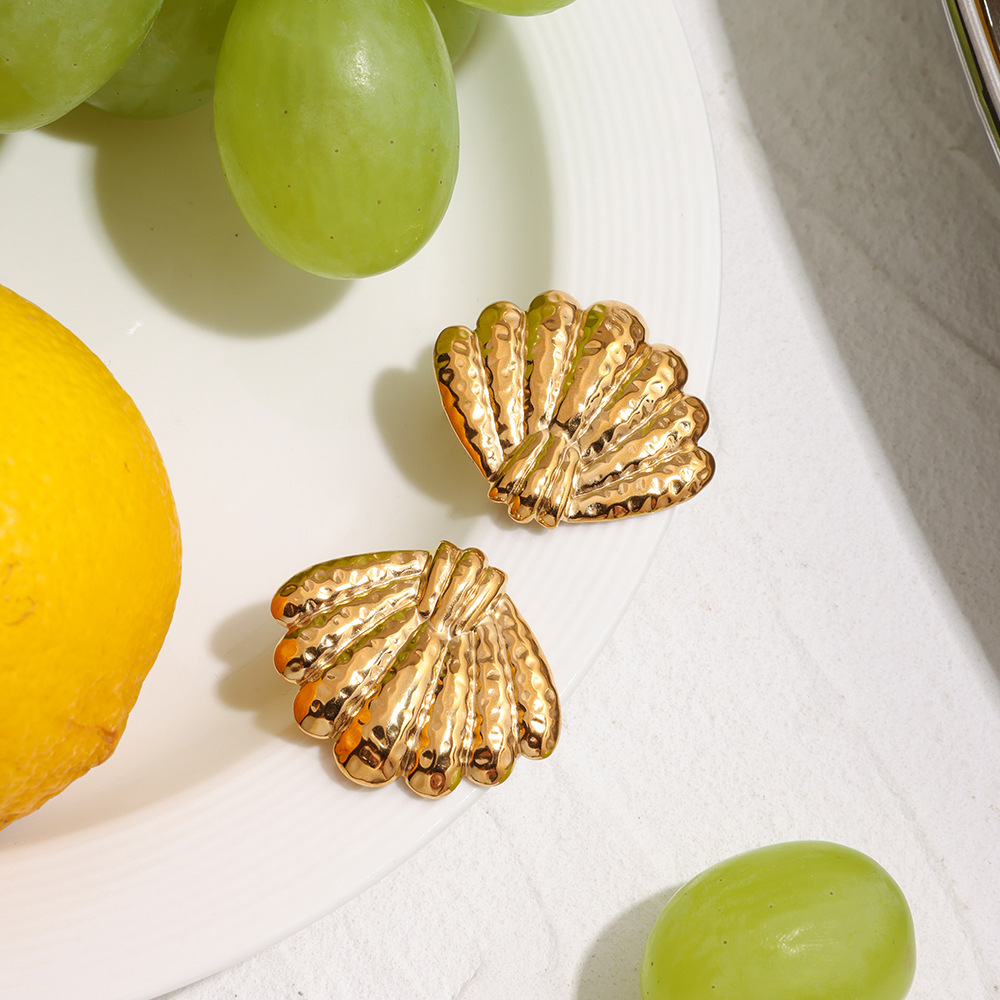 Boucle en acier inoxydable, Acier inoxydable 304, coquille, Placage de couleur d'or, bijoux de mode, doré, Vendu par paire
