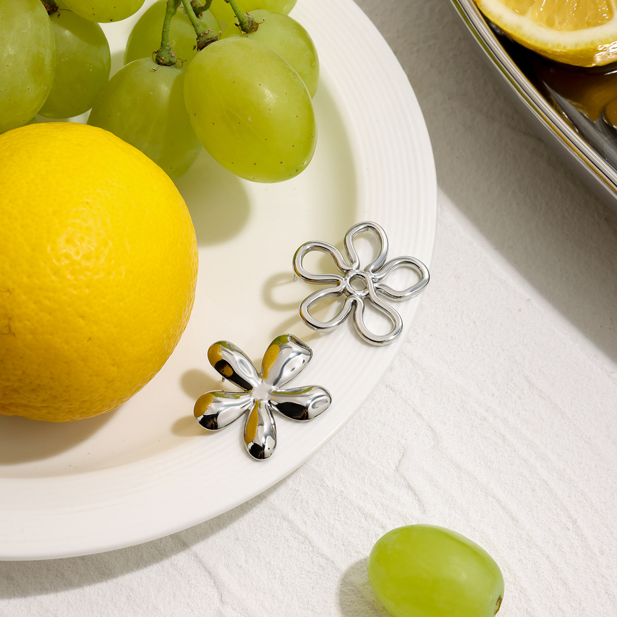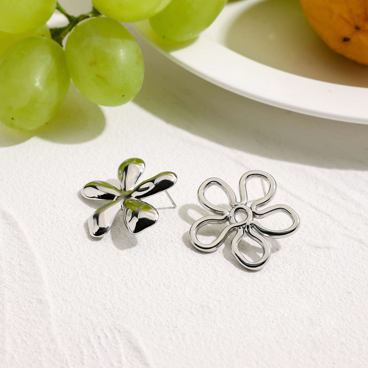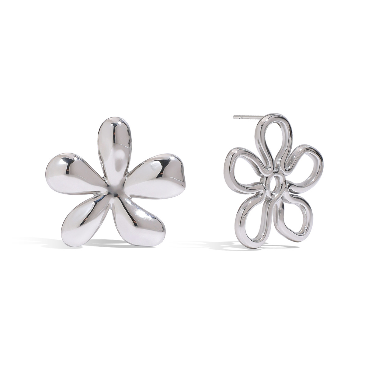 Boucle en acier inoxydable, Acier inoxydable 304, fleur, Placage de couleur d'or, bijoux de mode, argent, Vendu par paire