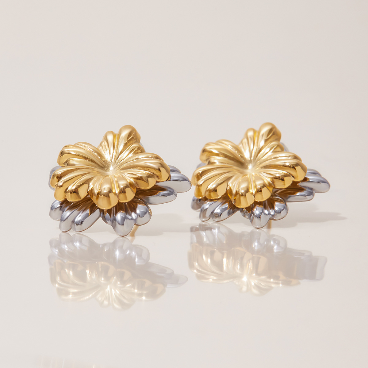 Boucle en acier inoxydable, Acier inoxydable 304, fleur, Placage, bijoux de mode & pour femme & deux tons, Vendu par paire