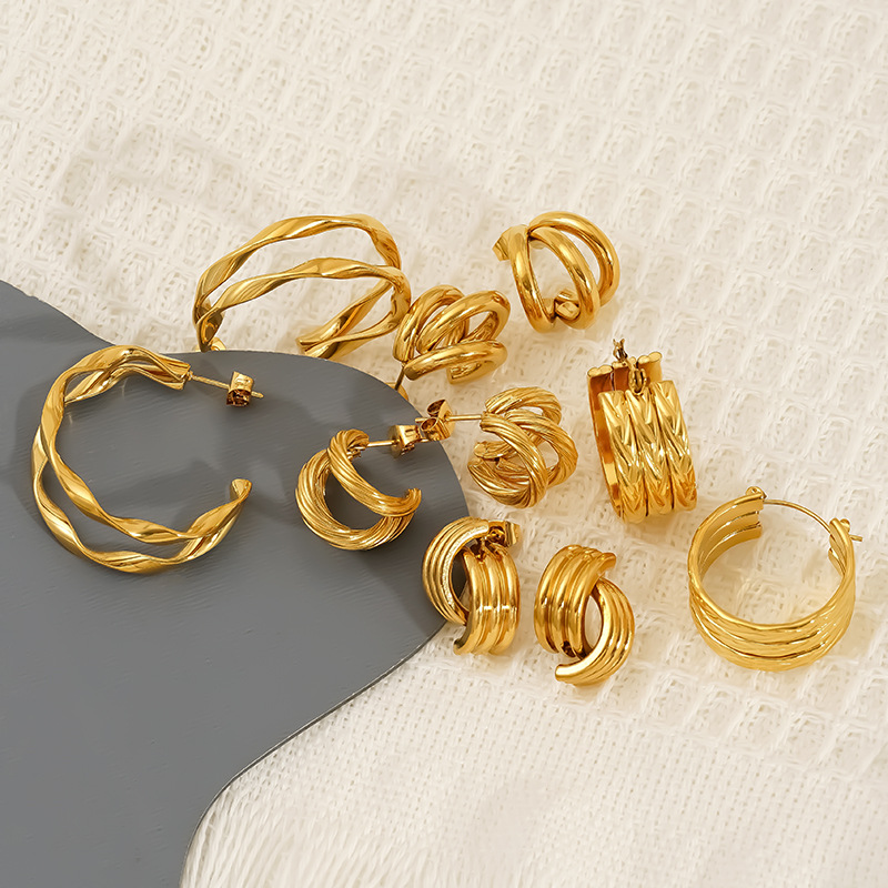 Boucle en acier inoxydable, Acier inoxydable 304, Plaqué or 18K, styles différents pour le choix & pour femme & creux, Vendu par paire