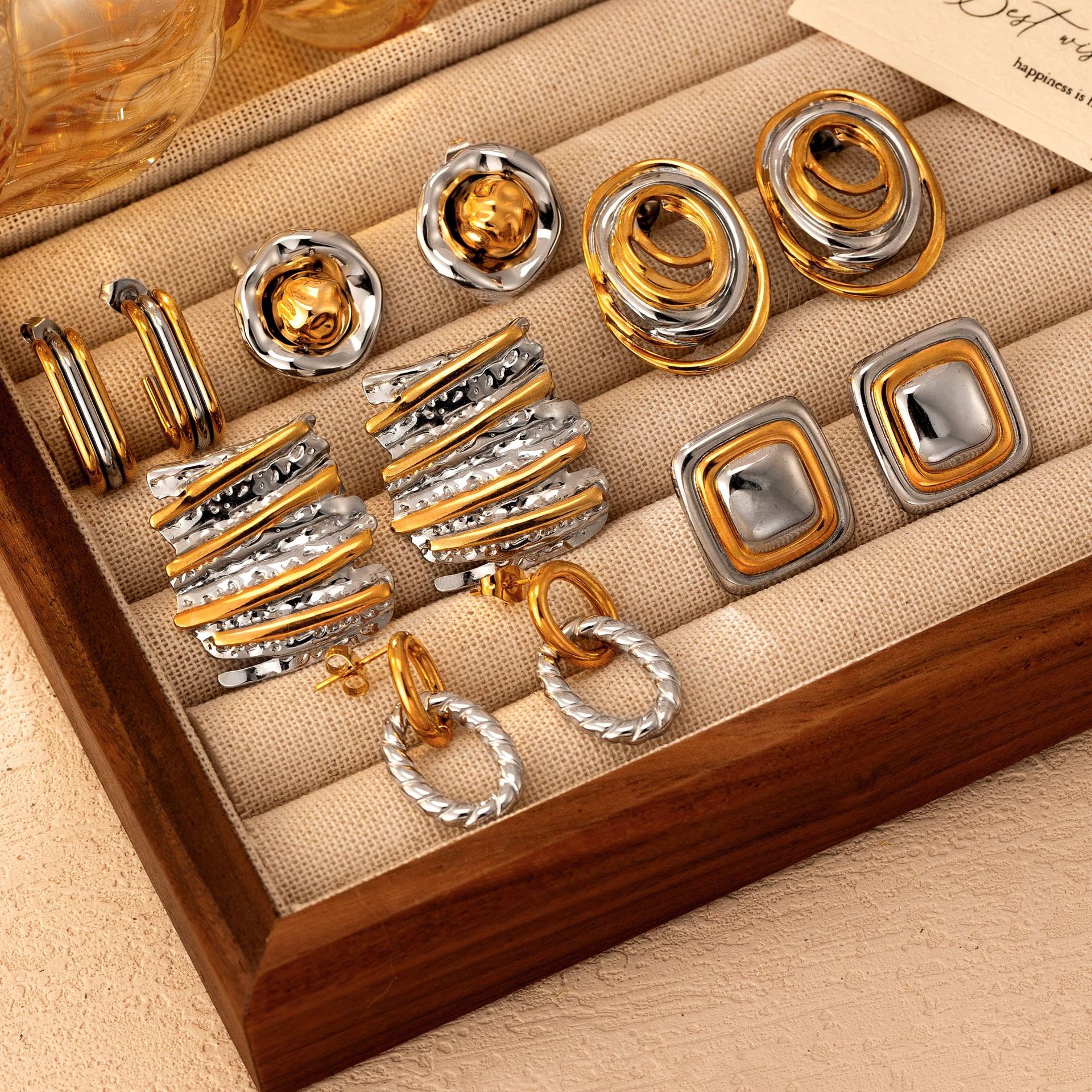 Boucle en acier inoxydable, Acier inoxydable 304, Placage, styles différents pour le choix & pour femme & deux tons, Vendu par paire