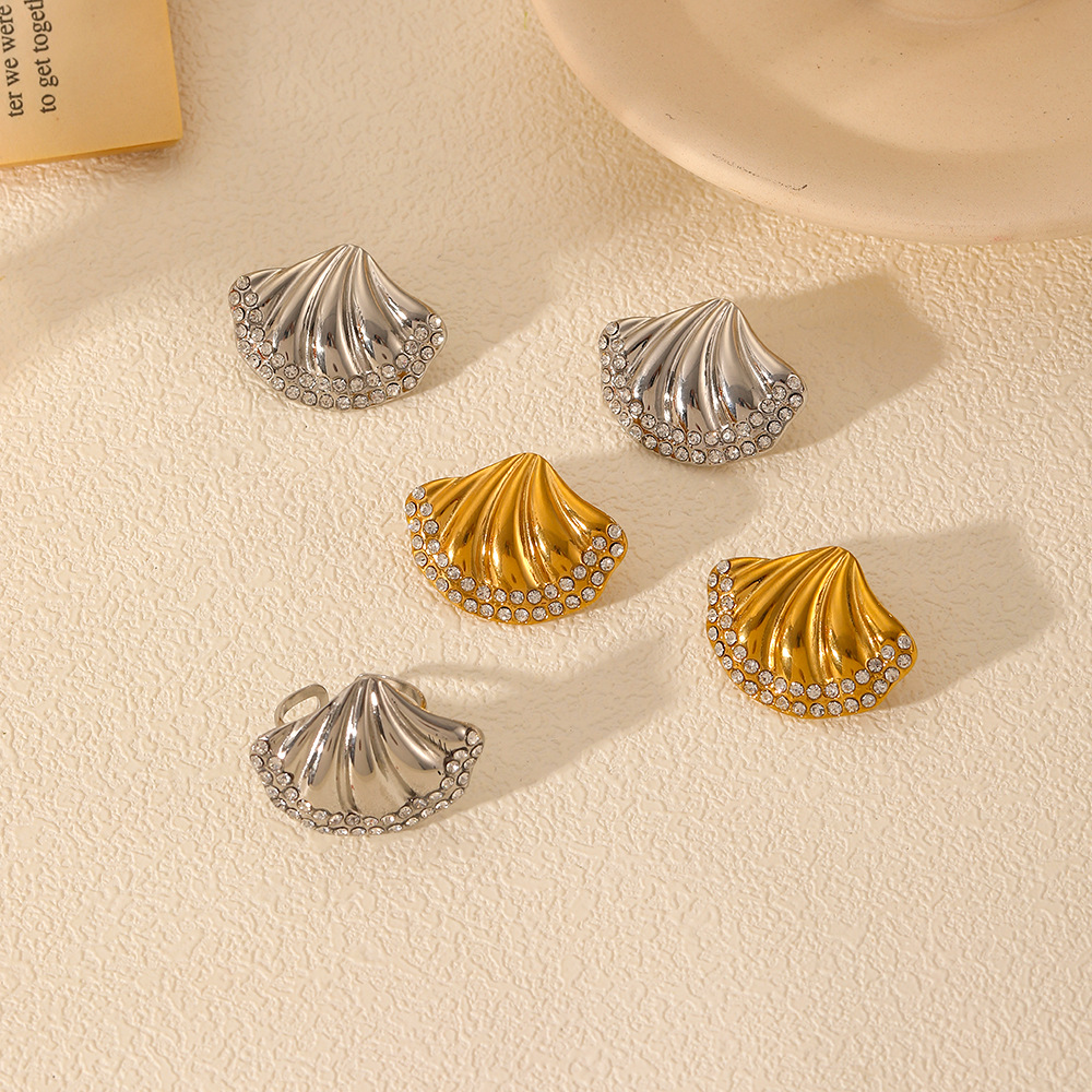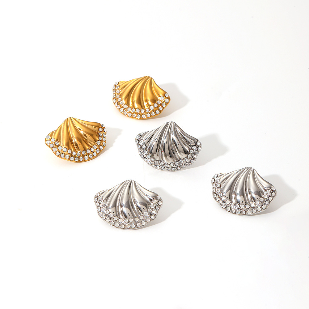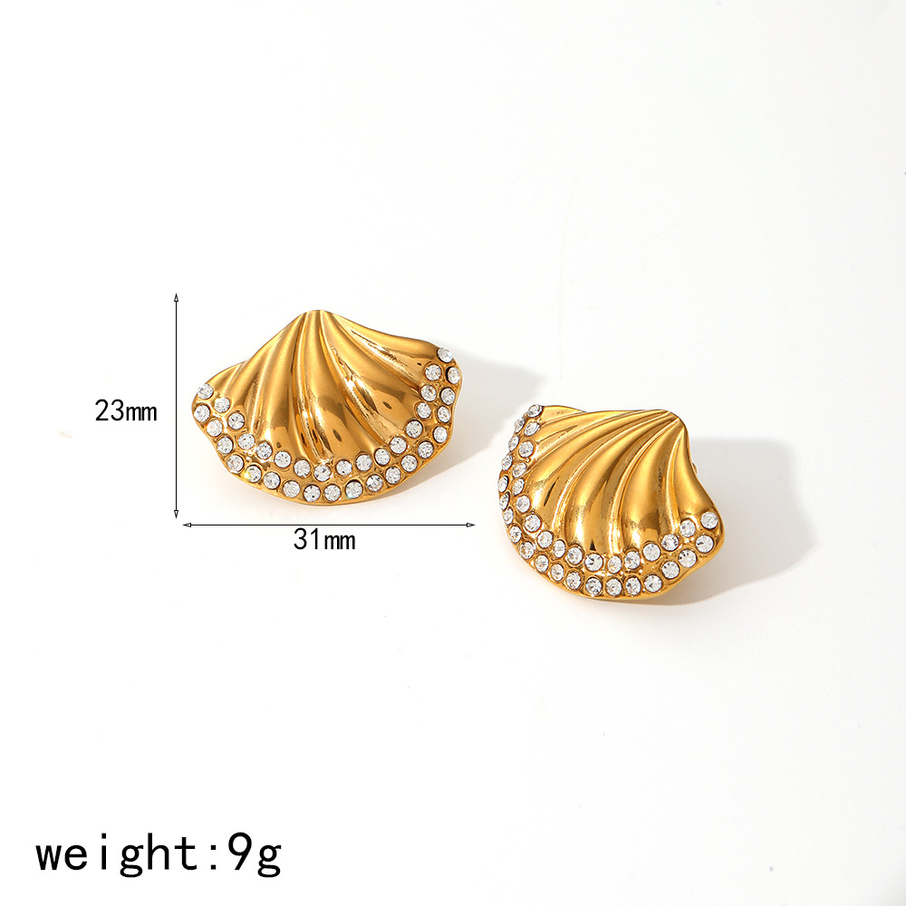 Boucle en acier inoxydable, Acier inoxydable 304, coquille, Placage, bijoux de mode & avec strass, plus de couleurs à choisir, Vendu par paire