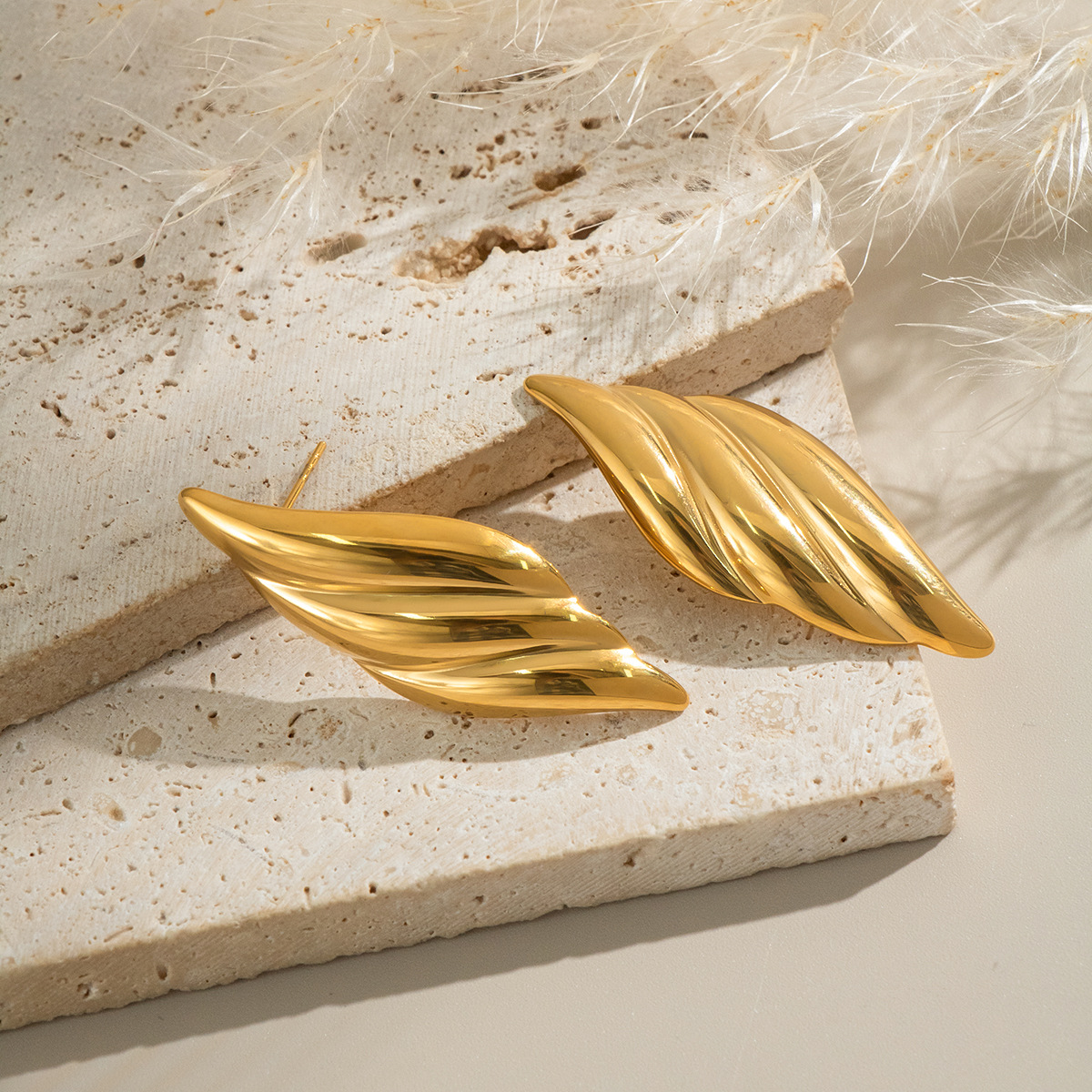 Boucle en acier inoxydable, Acier inoxydable 304, feuille, Placage, bijoux de mode & pour femme, plus de couleurs à choisir, Vendu par paire