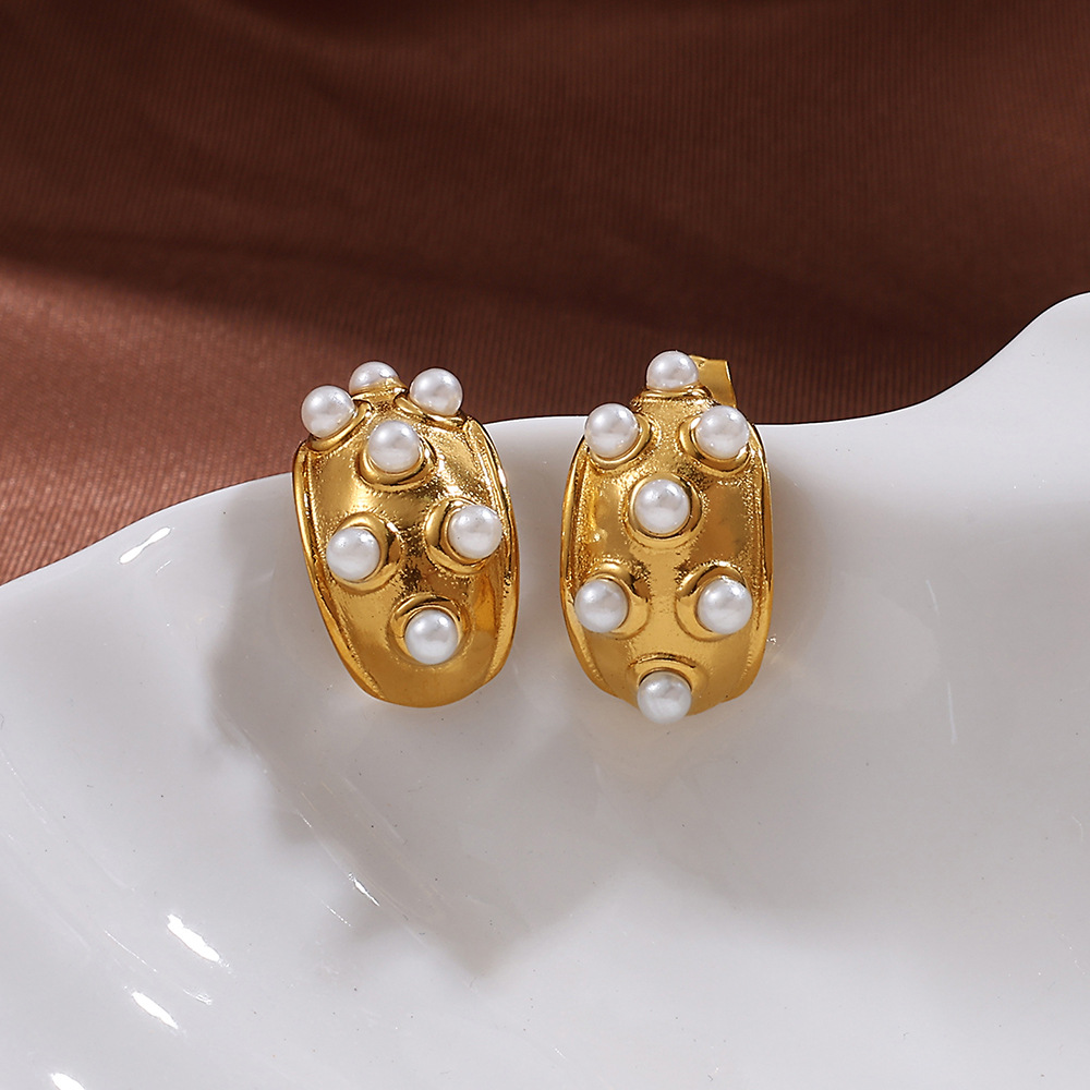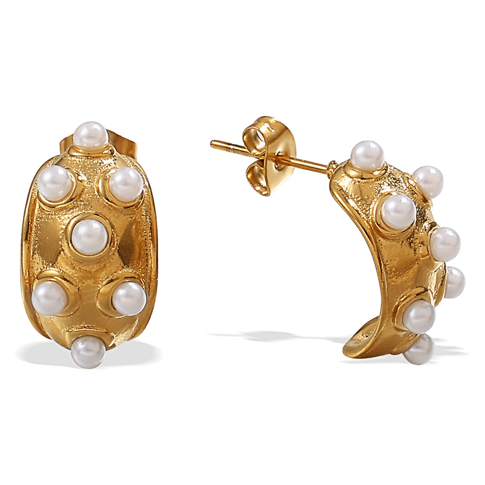 Boucle en acier inoxydable, Acier inoxydable 304, avec perle de plastique, Placage de couleur d'or, bijoux de mode, plus de couleurs à choisir, Vendu par paire