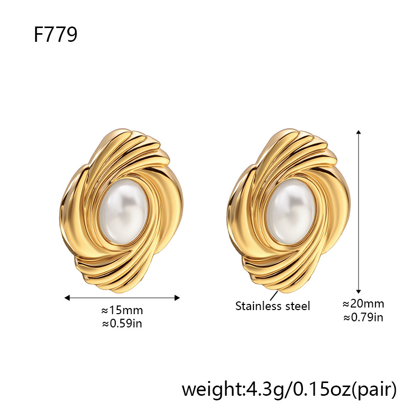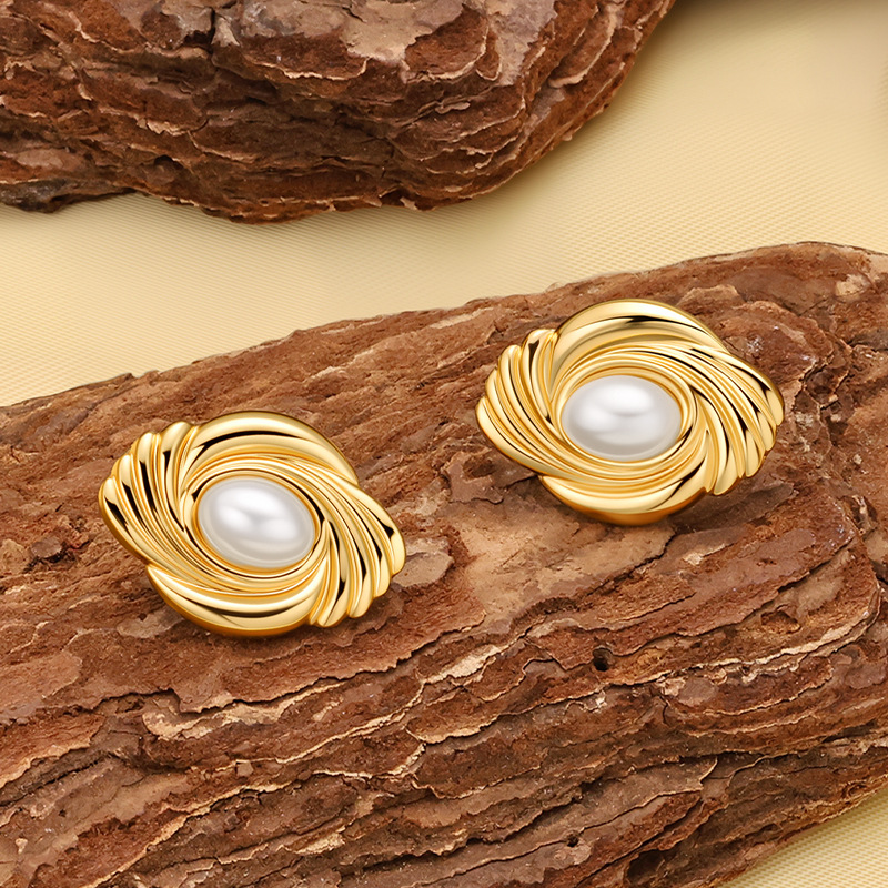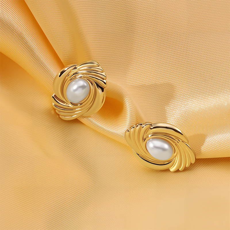 Boucle en acier inoxydable, Acier inoxydable 304, avec perle de plastique, Placage, bijoux de mode & pour femme, doré, Vendu par paire