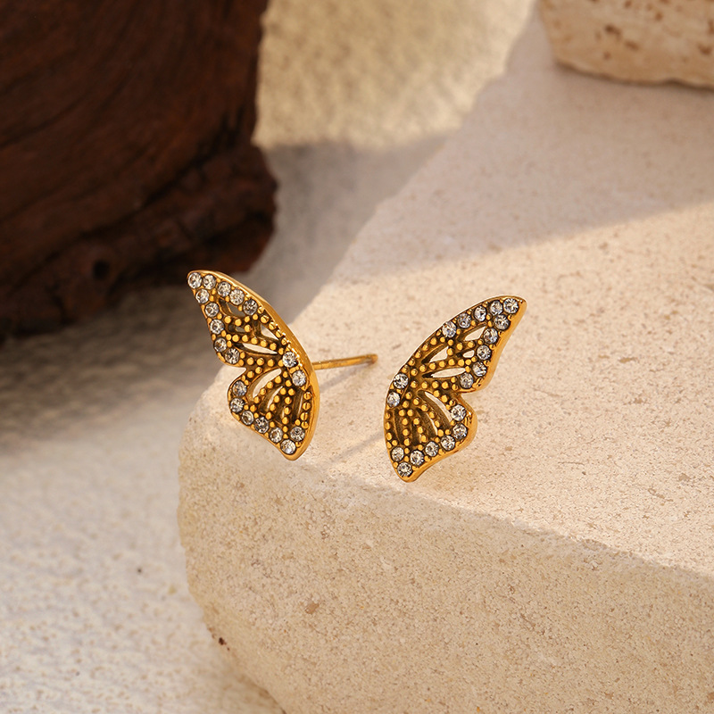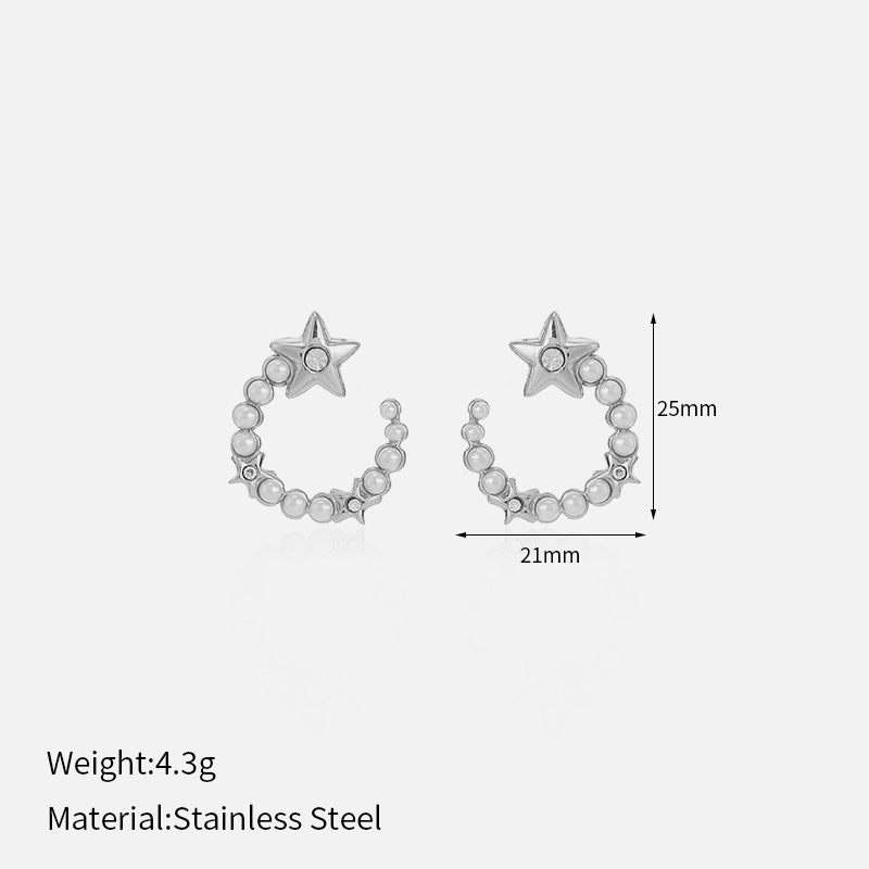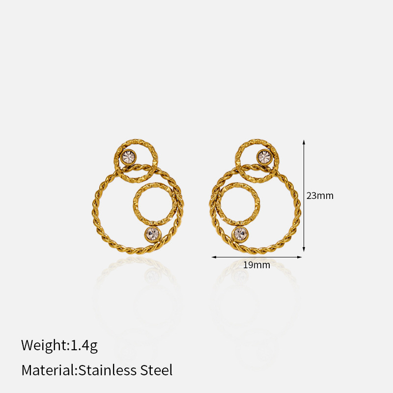 Boucle en acier inoxydable, acier inoxydable puce boucle d'oreille, Plat rond, avec strass Vendu par paire