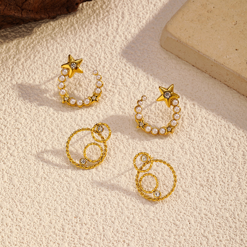 Boucle en acier inoxydable, acier inoxydable puce boucle d'oreille, Plat rond, avec strass, plus de couleurs à choisir Vendu par paire