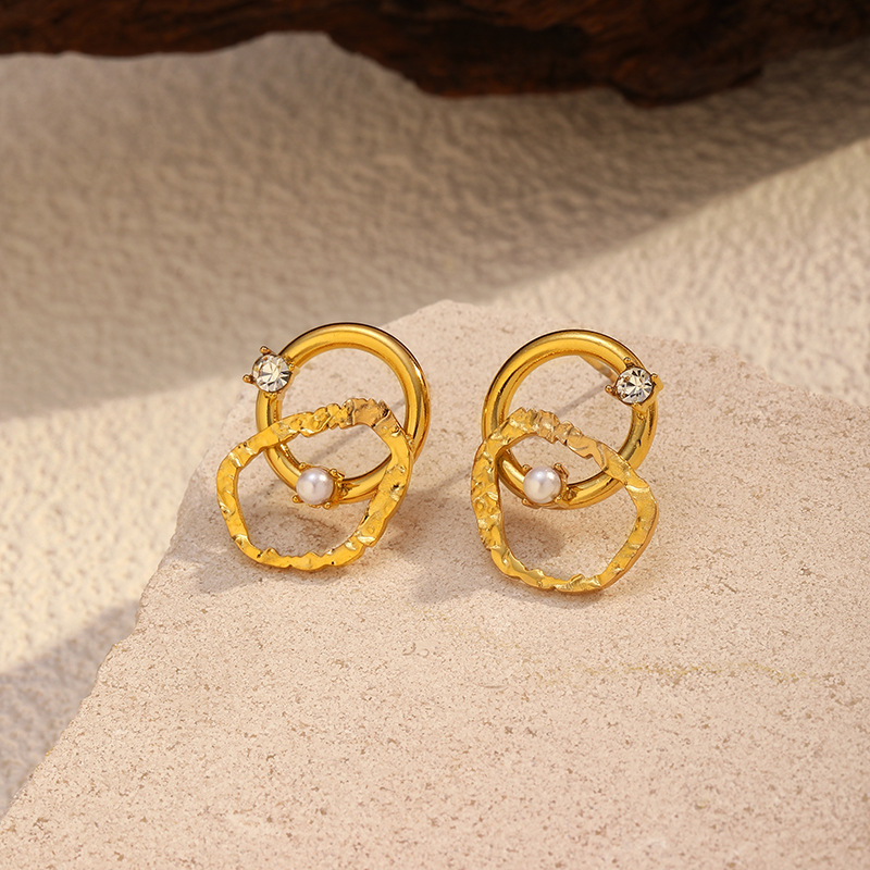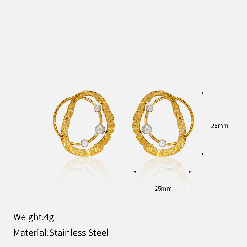 Boucle en acier inoxydable, Acier inoxydable 304, avec perle de plastique, Placage, styles différents pour le choix & pour femme & avec strass & creux, doré, Vendu par paire