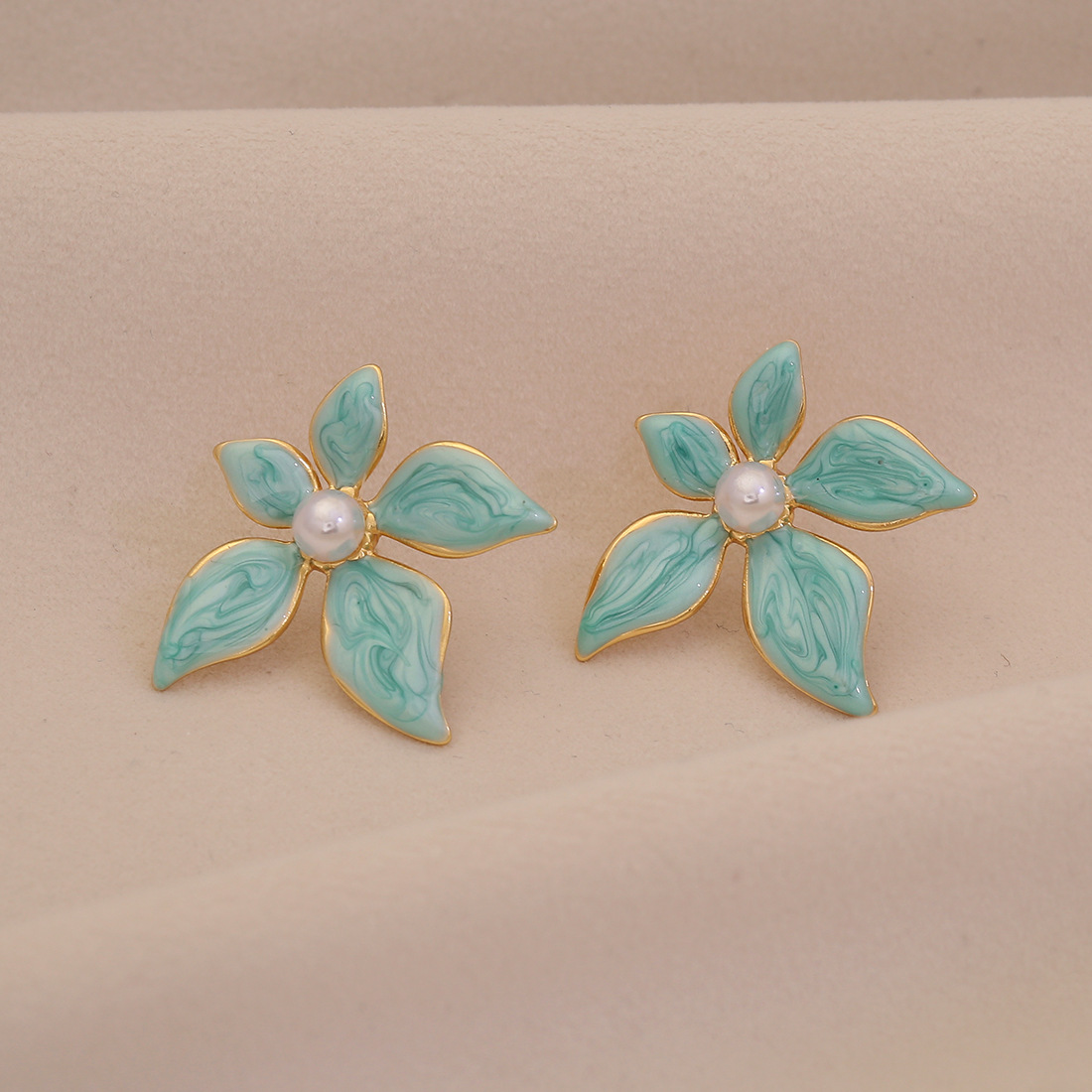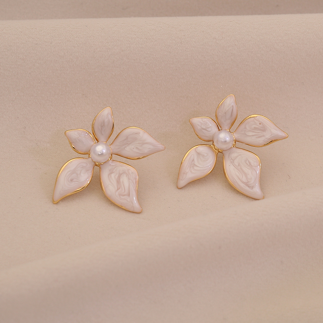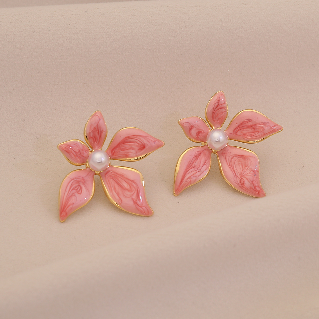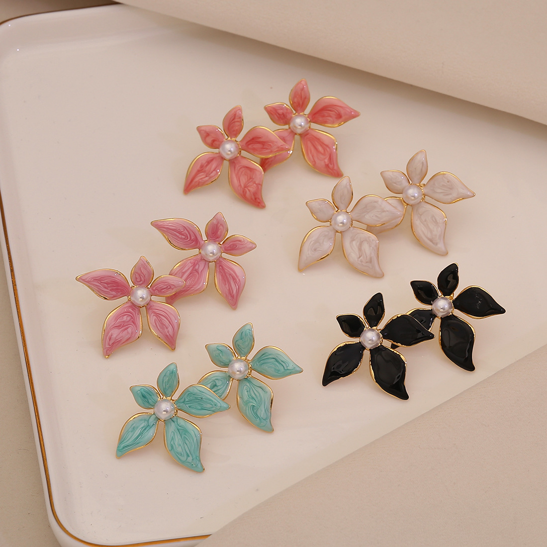 Boucle en acier inoxydable, Acier inoxydable 304, avec perle de plastique, fleur, Placage de couleur d'or, bijoux de mode & pour femme & émail, plus de couleurs à choisir, Vendu par paire