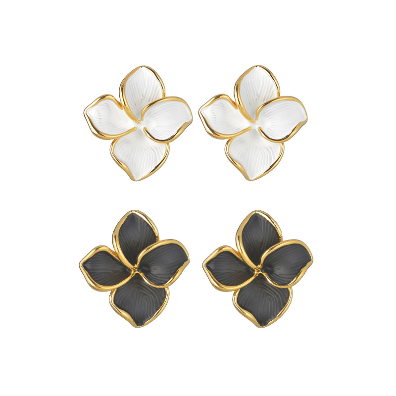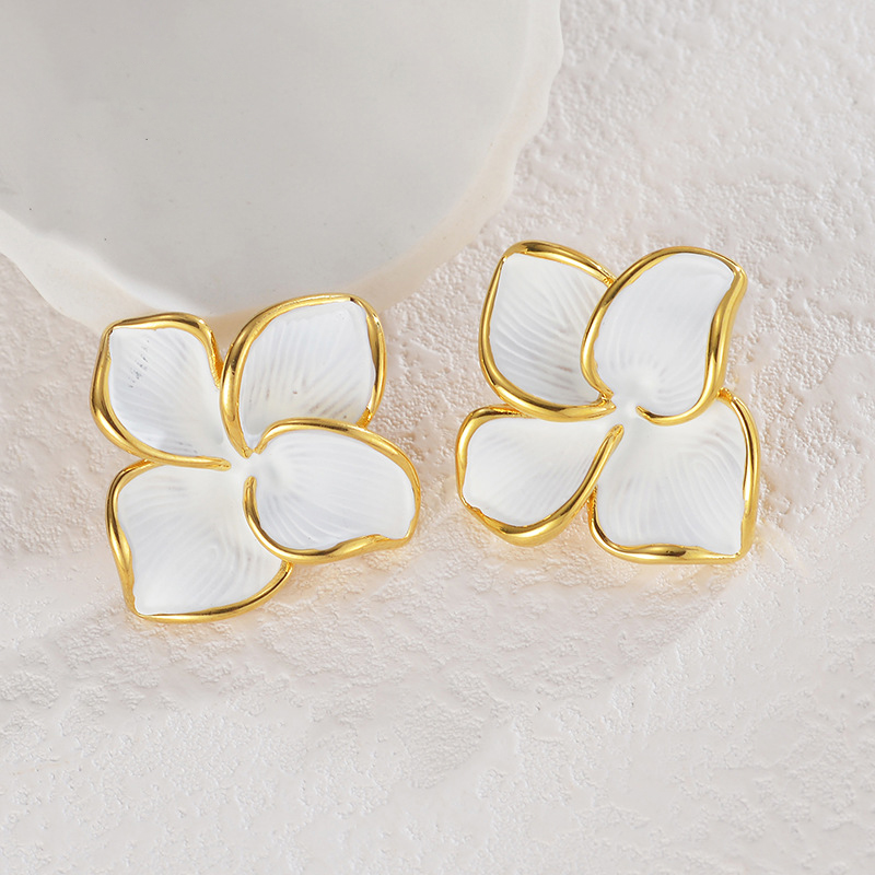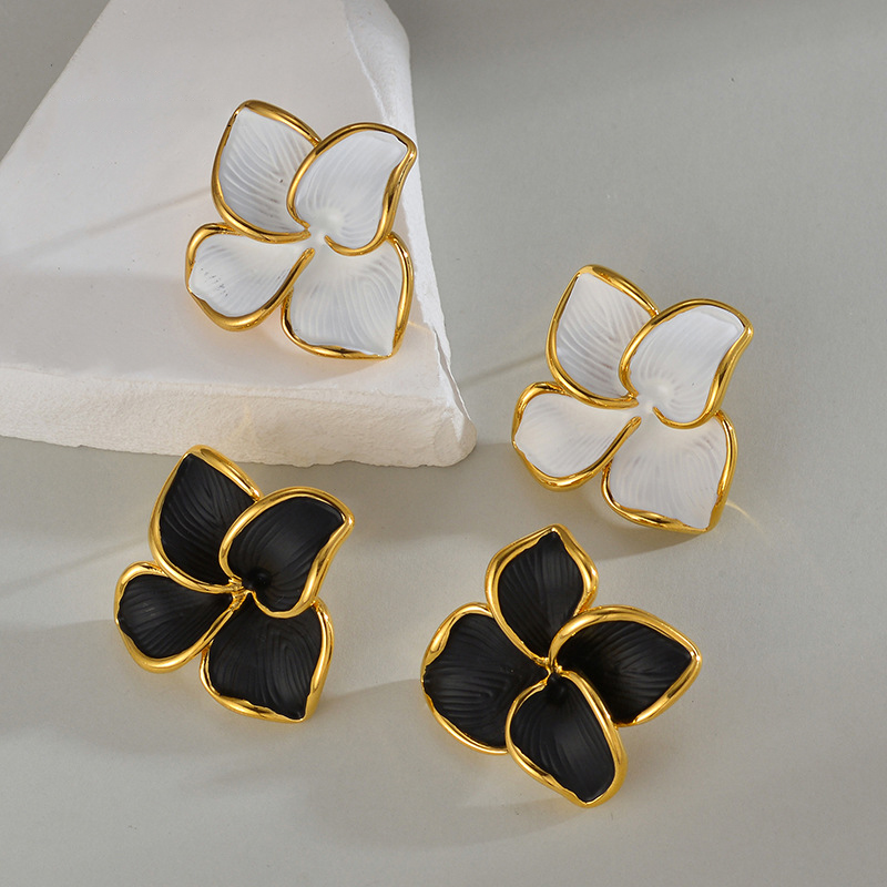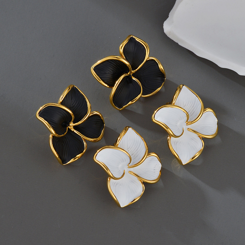 Boucle en acier inoxydable, Acier inoxydable 304, fleur, Placage de couleur d'or, bijoux de mode & pour femme & émail, plus de couleurs à choisir, Vendu par paire