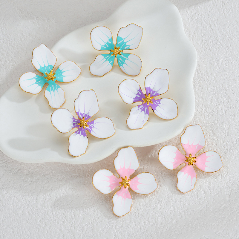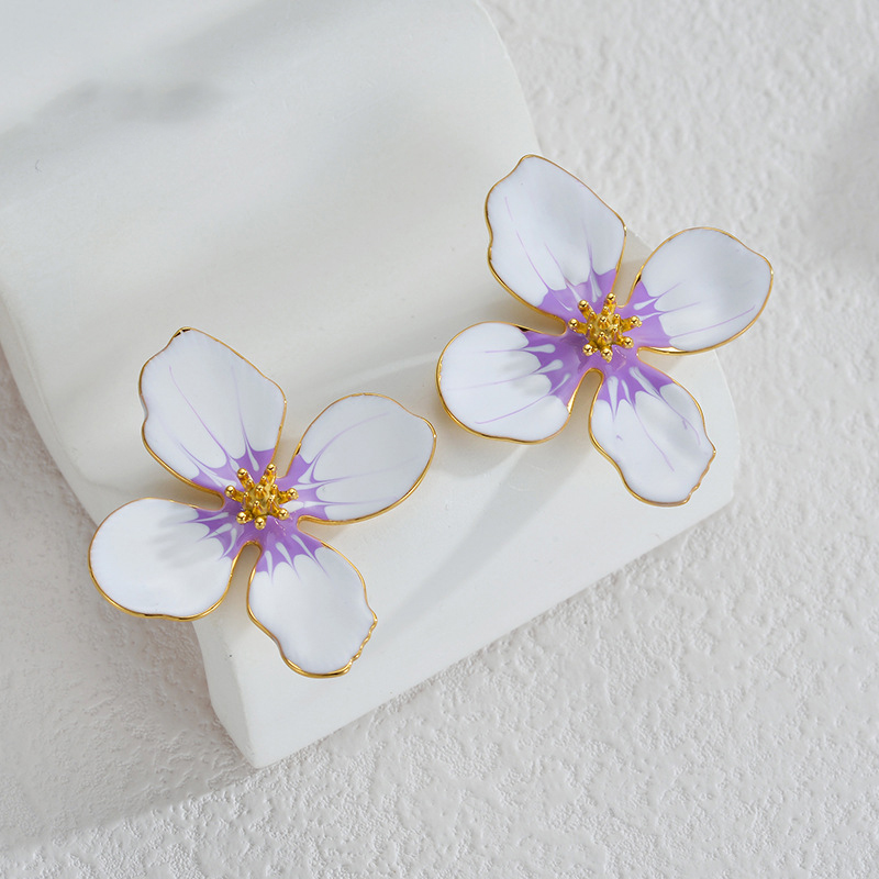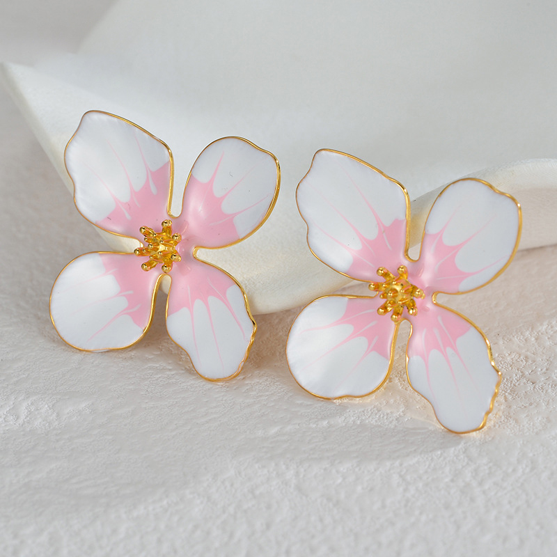 Boucle en acier inoxydable, Acier inoxydable 304, fleur, Placage de couleur d'or, bijoux de mode & pour femme & émail, plus de couleurs à choisir, Vendu par paire