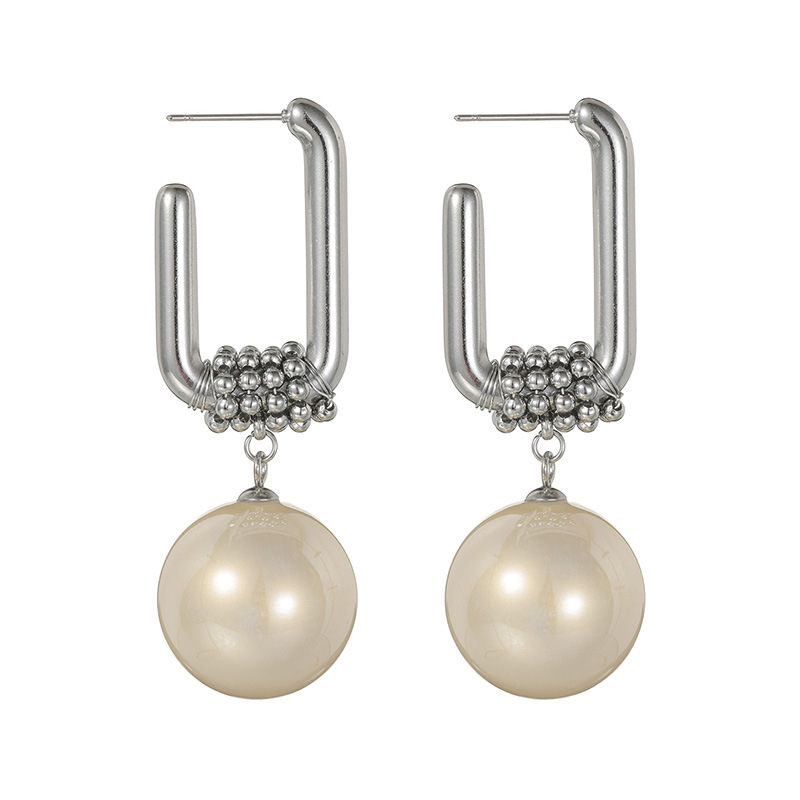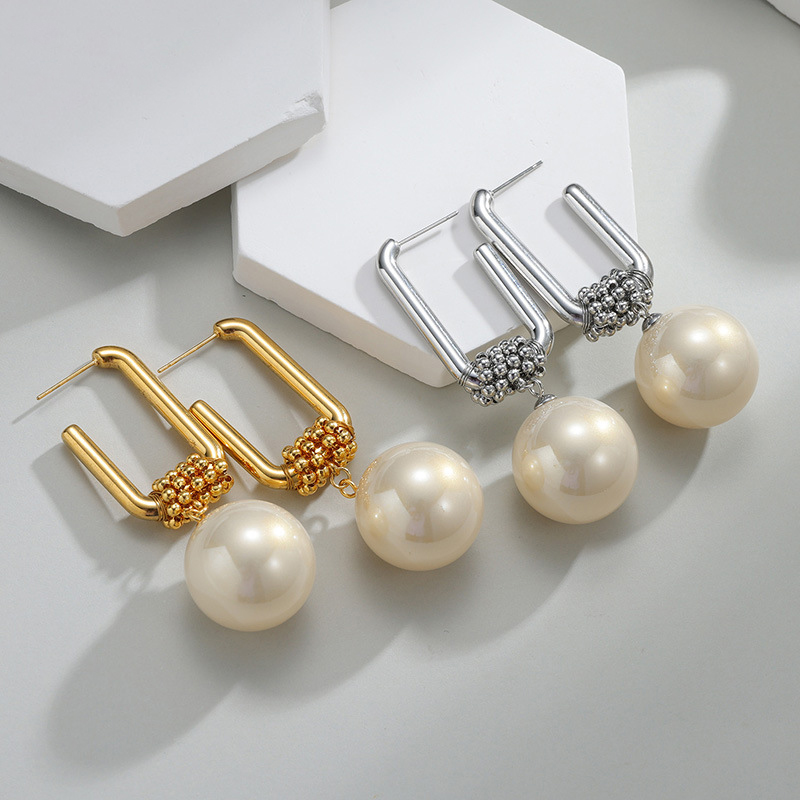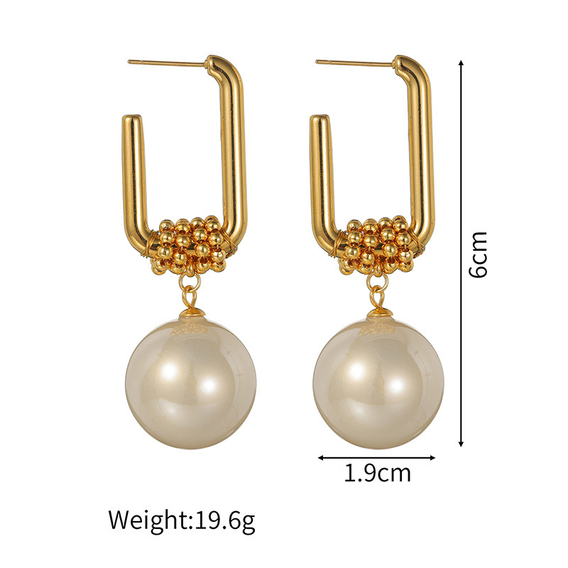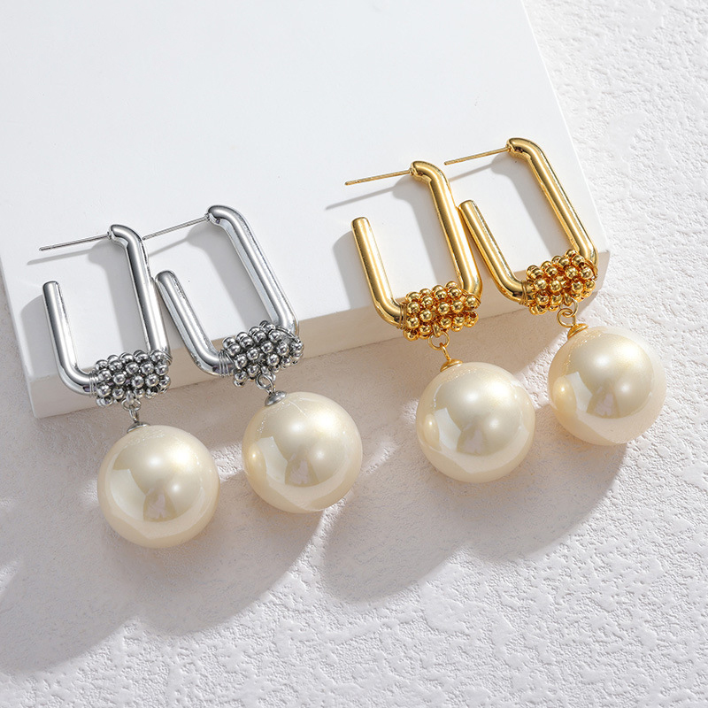 Boucle en acier inoxydable, Acier inoxydable 304, avec perle de plastique, Placage, bijoux de mode & pour femme, doré, Vendu par paire