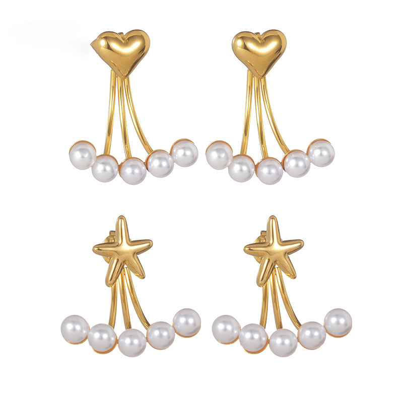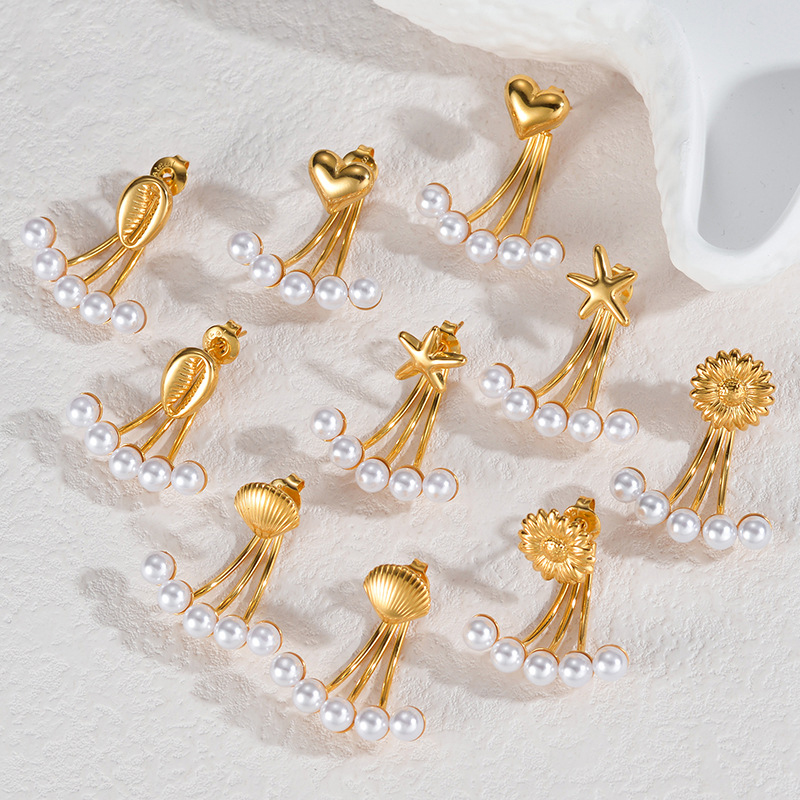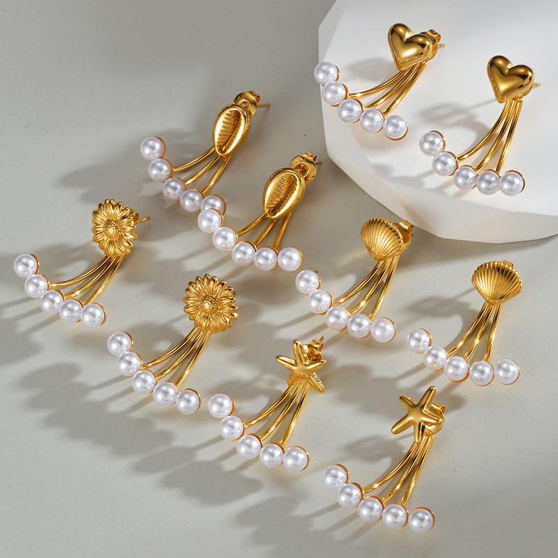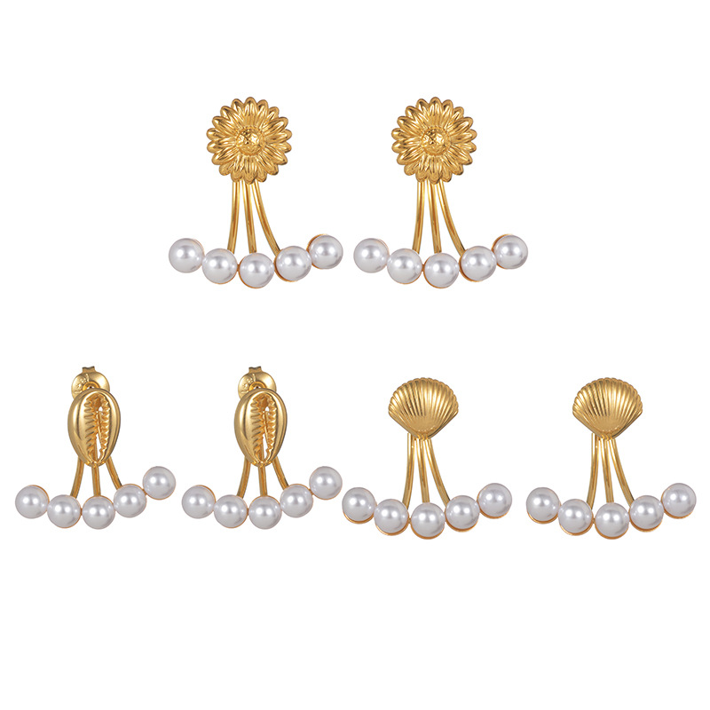 Boucle en acier inoxydable, Acier inoxydable 304, avec perle de plastique, Placage, bijoux de mode & styles différents pour le choix & pour femme, doré, Vendu par paire