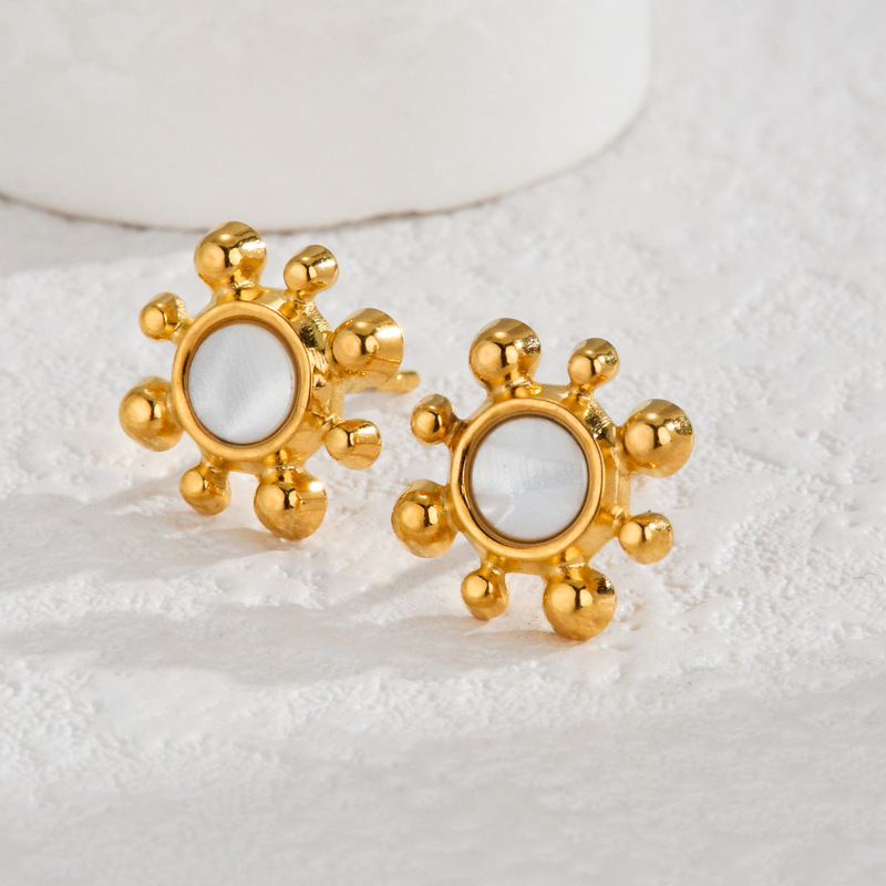 Boucle en acier inoxydable, Acier inoxydable 304, avec résine, fleur, Plaqué or 18K, bijoux de mode & pour femme, Vendu par paire