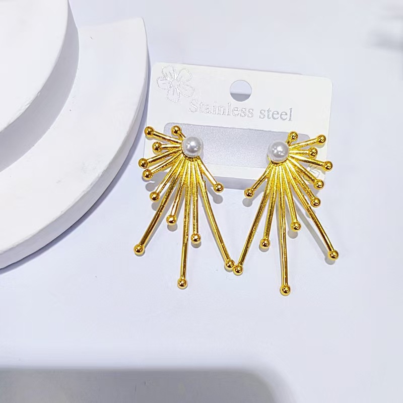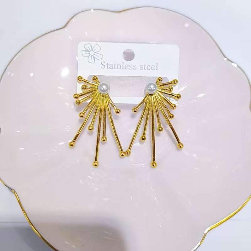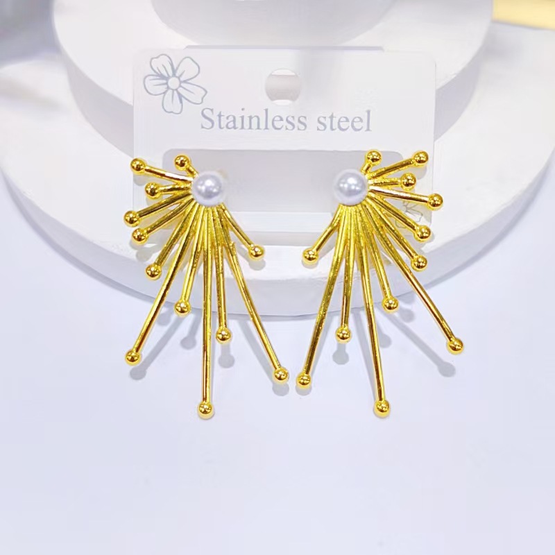 Boucle en acier inoxydable, Acier inoxydable 304, avec perle de plastique, Placage de couleur d'or, bijoux de mode, doré, Vendu par paire