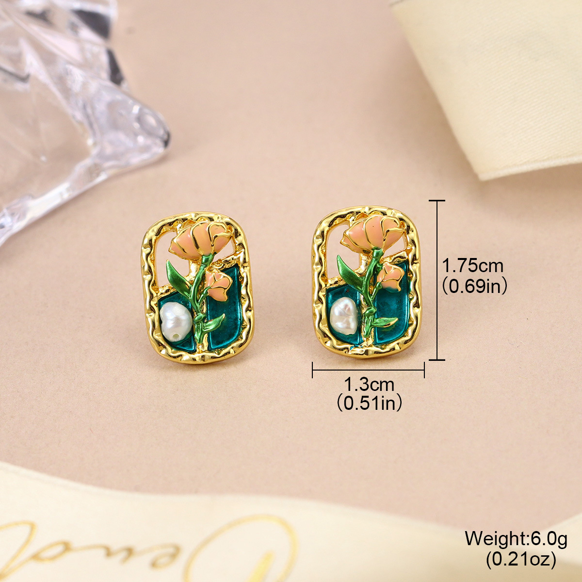 Boucle en laiton, avec zircon cubique & perle de plastique, Placage, styles différents pour le choix & pour femme & émail, doré, Vendu par paire