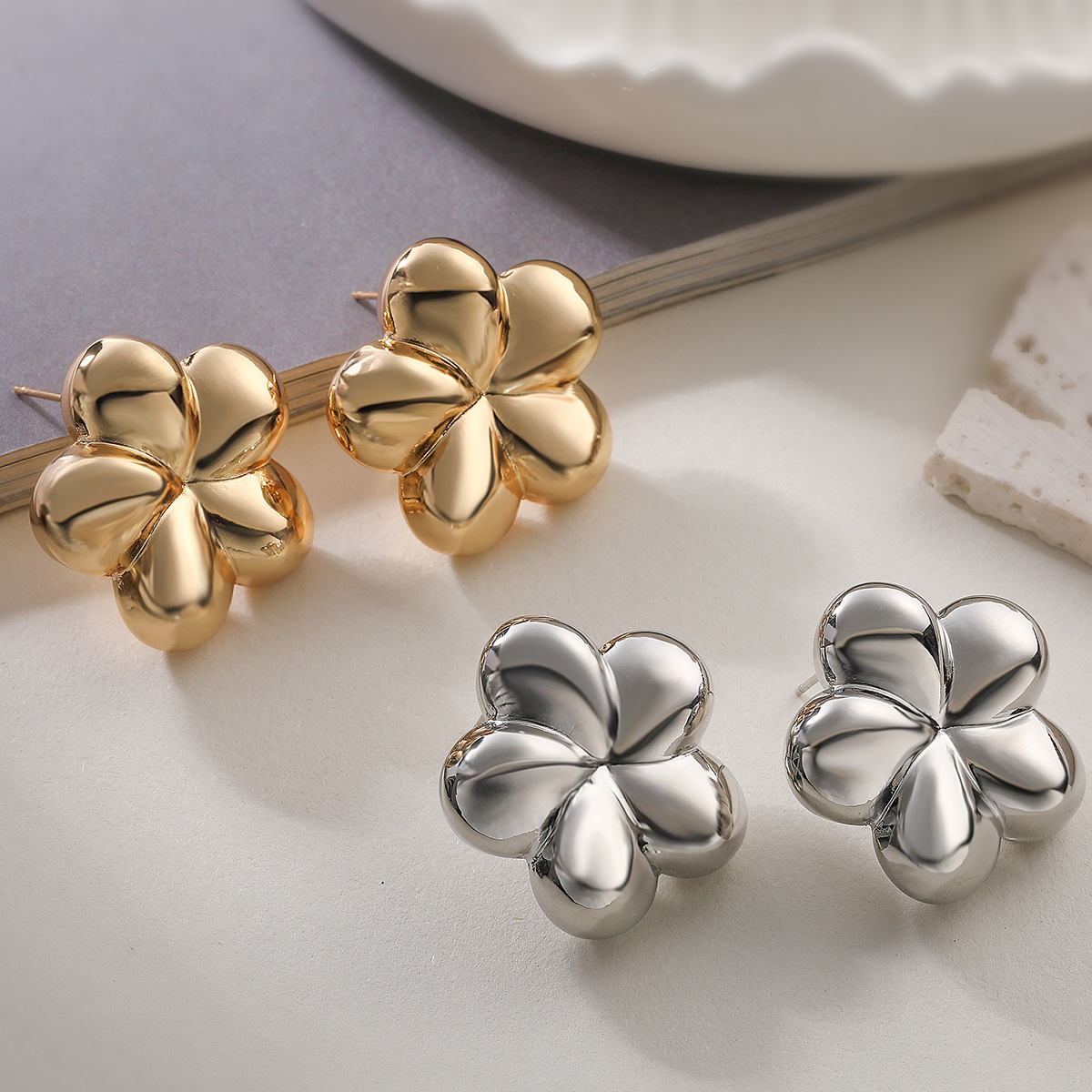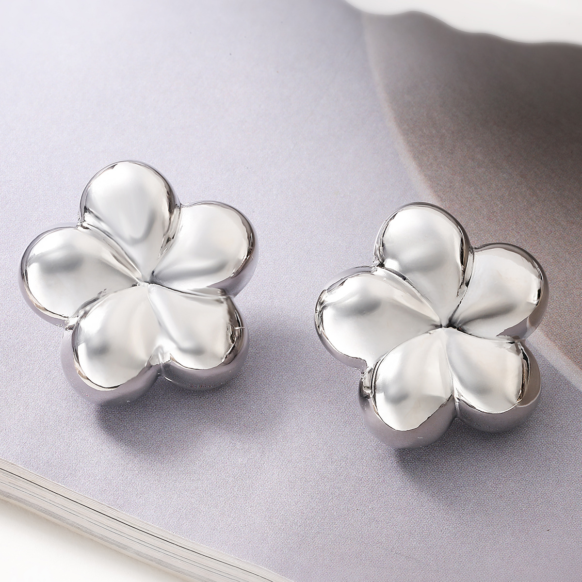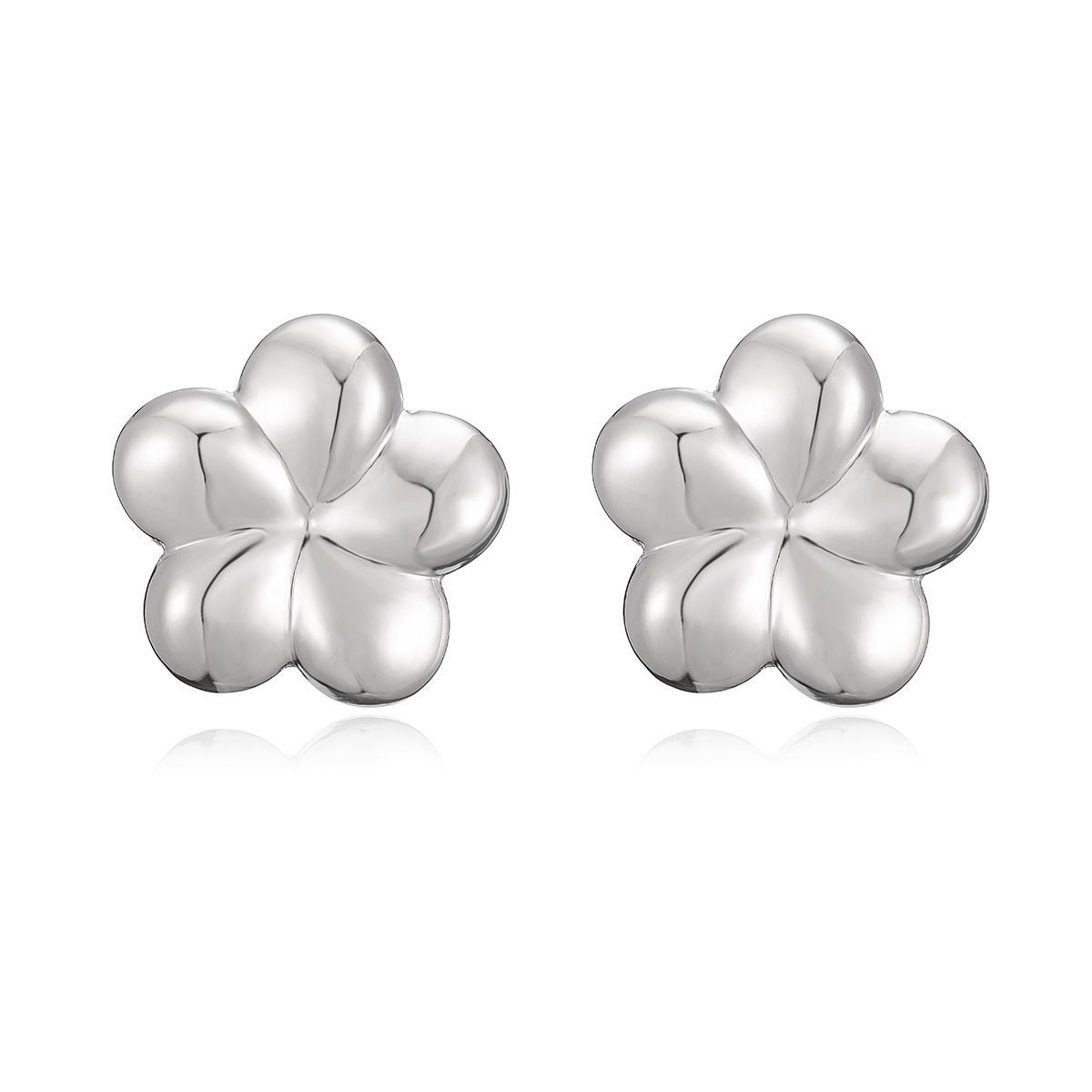 Boucle en laiton, fleur, Plaqué d'argent, pour femme, sans plomb et cadmium Vendu par paire