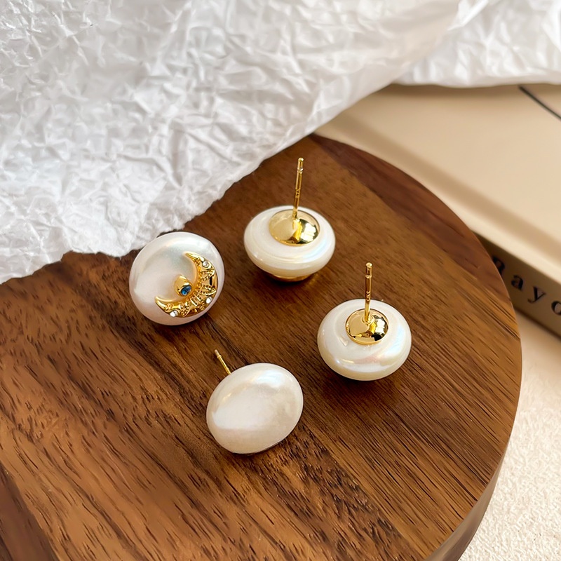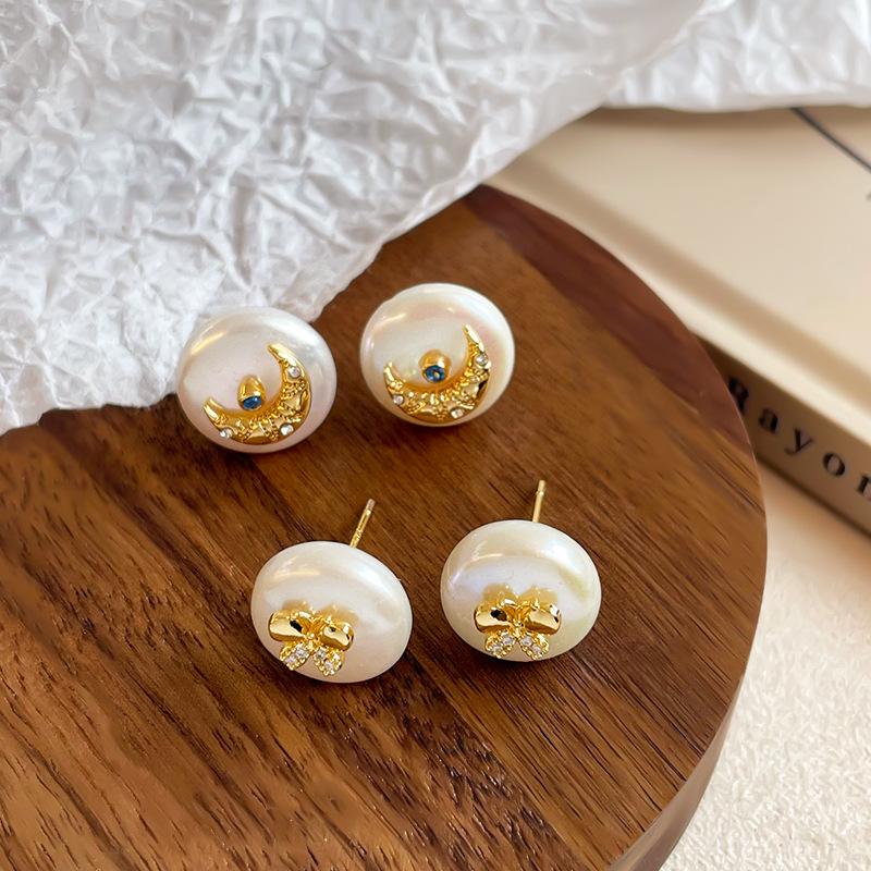 Boucles d'oreilles d'eau douce de Perle , perle d'eau douce cultivée, avec laiton, Plat rond, Placage, bijoux de mode & avec strass, plus de couleurs à choisir, protéger l'environnement, sans nickel, plomb et cadmium, 15x15x9mm, Vendu par paire