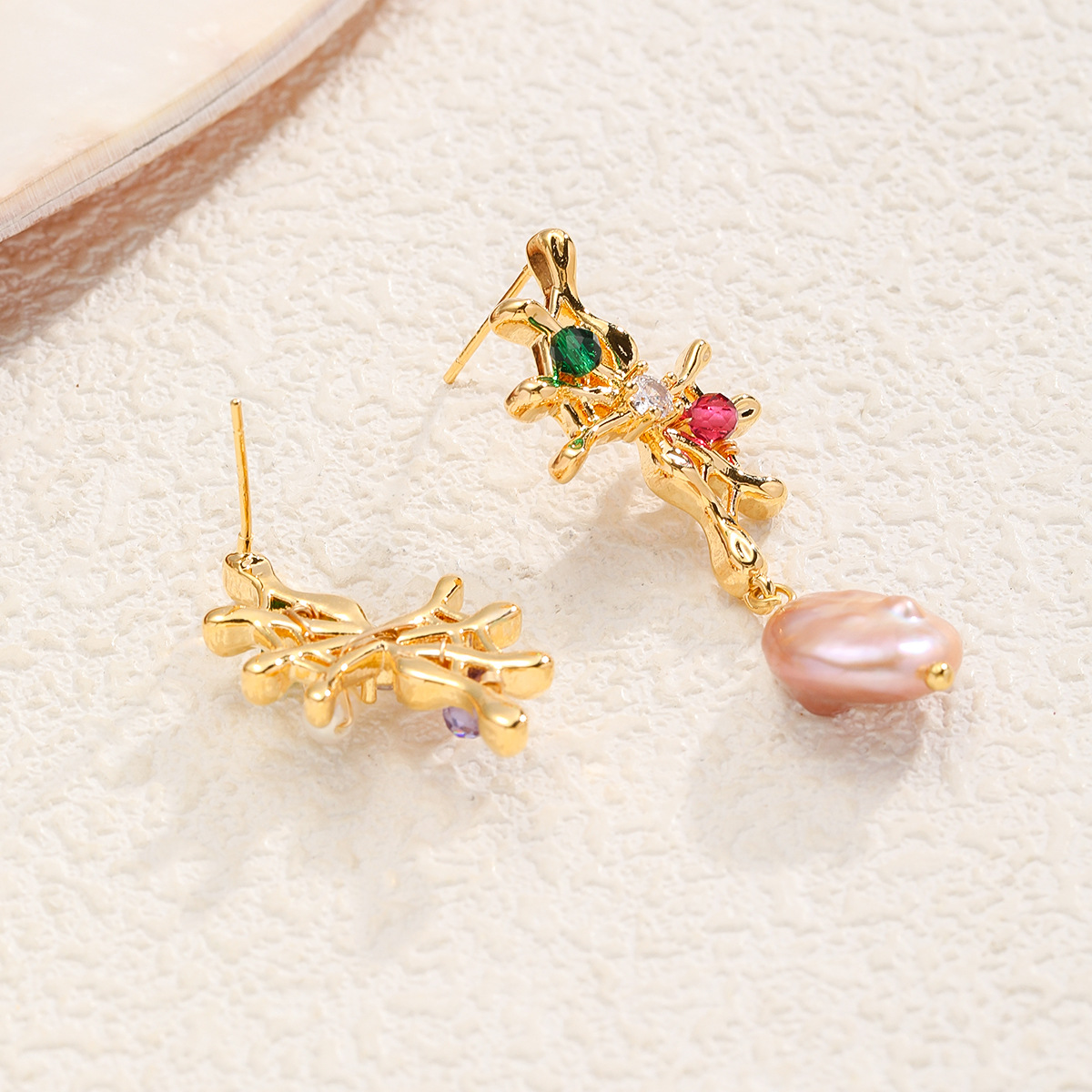 Boucles d'oreilles d'eau douce de Perle , perle d'eau douce cultivée, avec laiton, Baroque, Placage, bijoux de mode & pavé de micro zircon & émail, plus de couleurs à choisir, protéger l'environnement, sans nickel, plomb et cadmium, 49x17x8mm, Vendu par paire