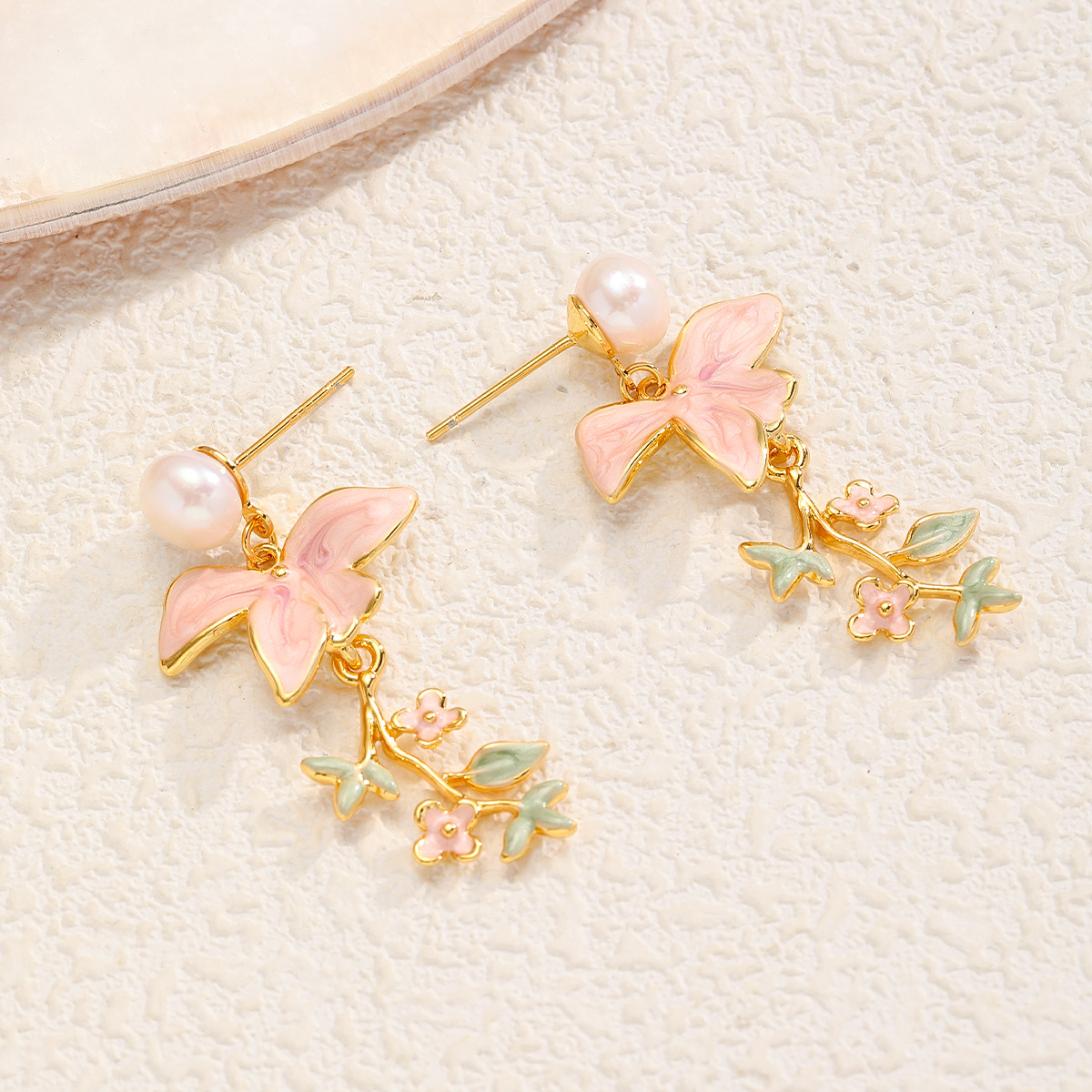 Boucles d'oreilles d'eau douce de Perle , laiton, avec perle, papillon, Placage de couleur platine, couleurs mélangées, protéger l'environnement, sans nickel, plomb et cadmium, 7-8mm, 45mm îte, Vendu par boîte