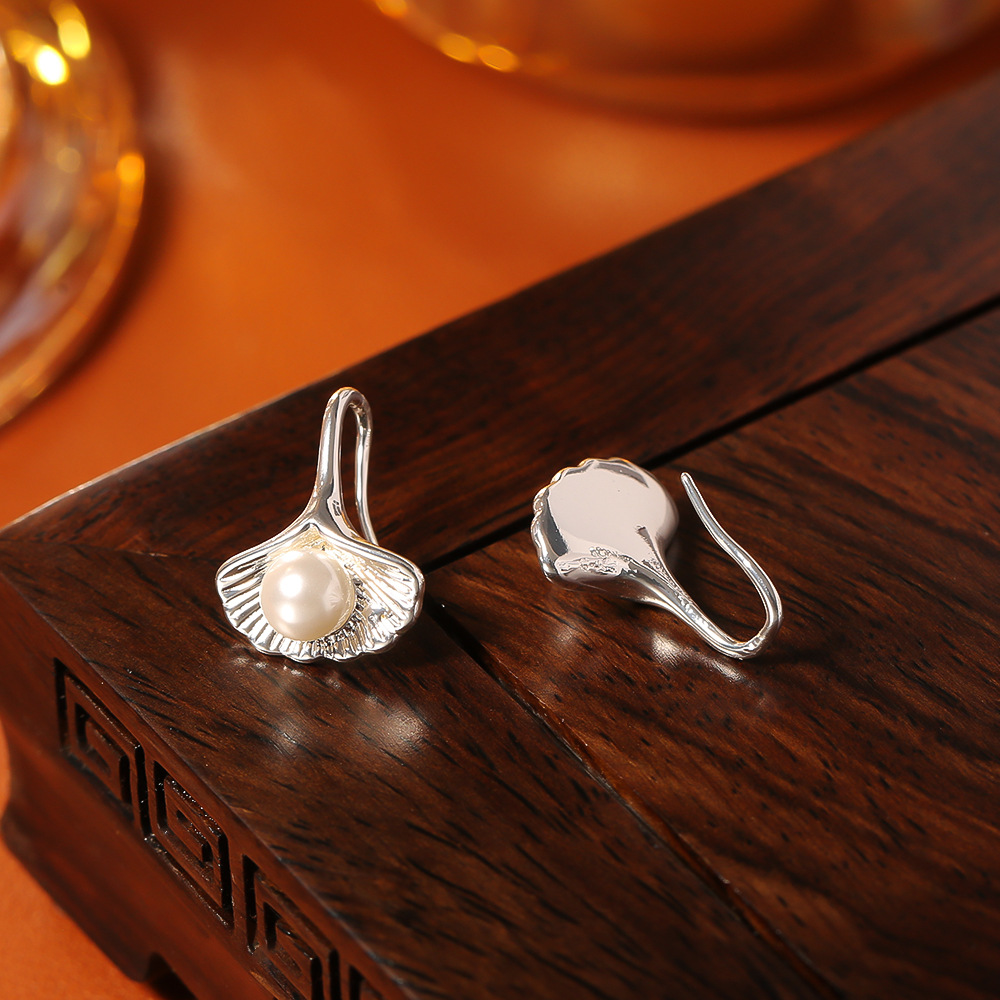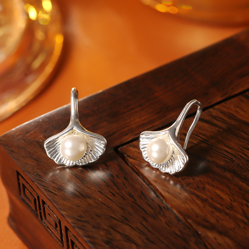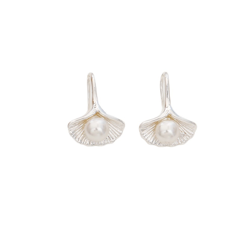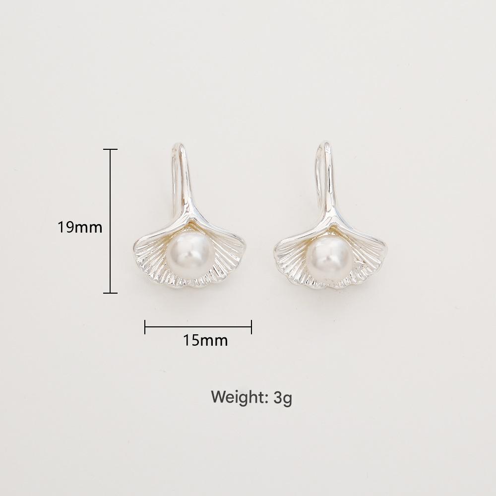 Boucles d'oreilles d'eau douce de Perle , laiton, avec perle d'eau douce cultivée, Ginkgo Feuille, Placage, bijoux de mode & pour femme, argent, Vendu par paire