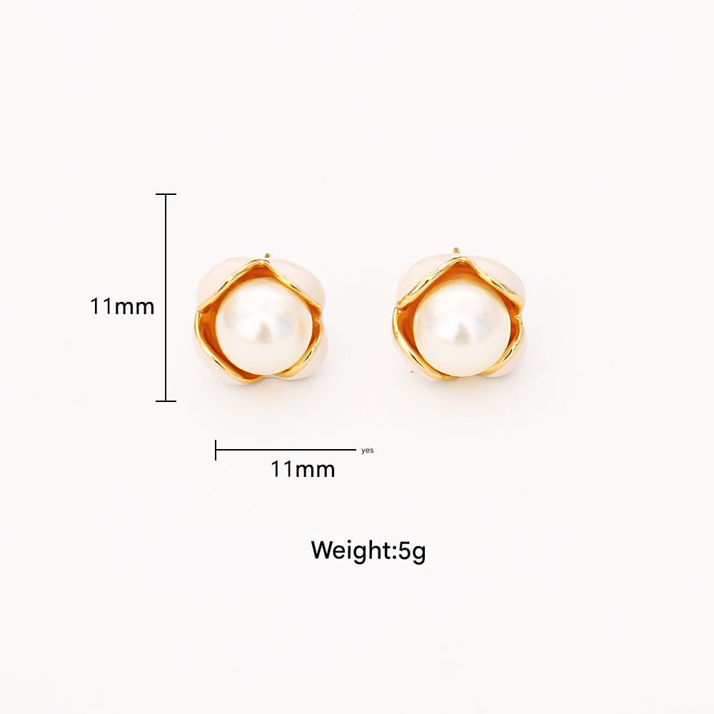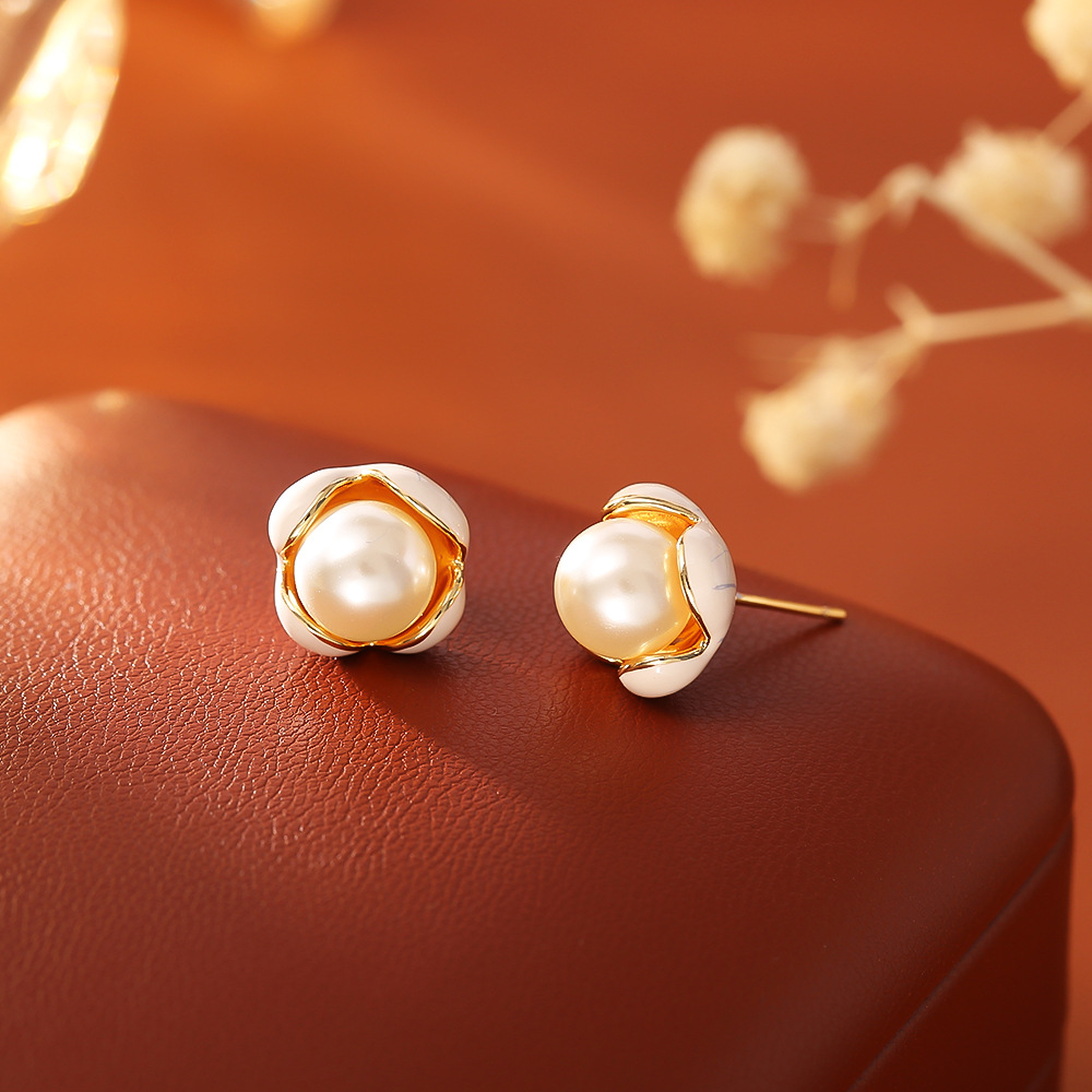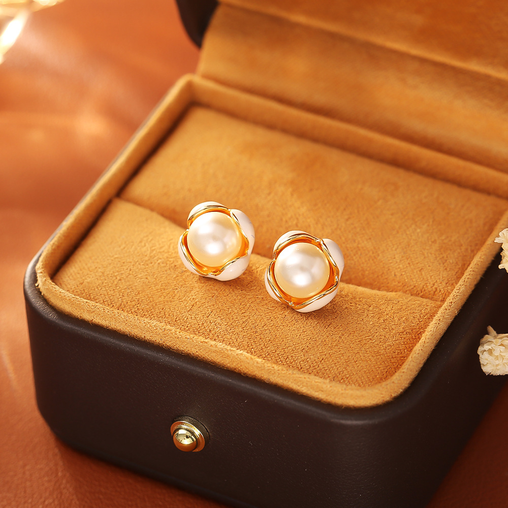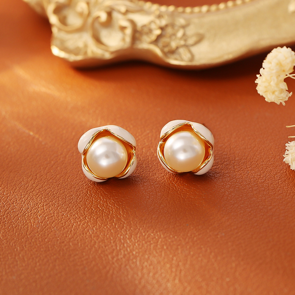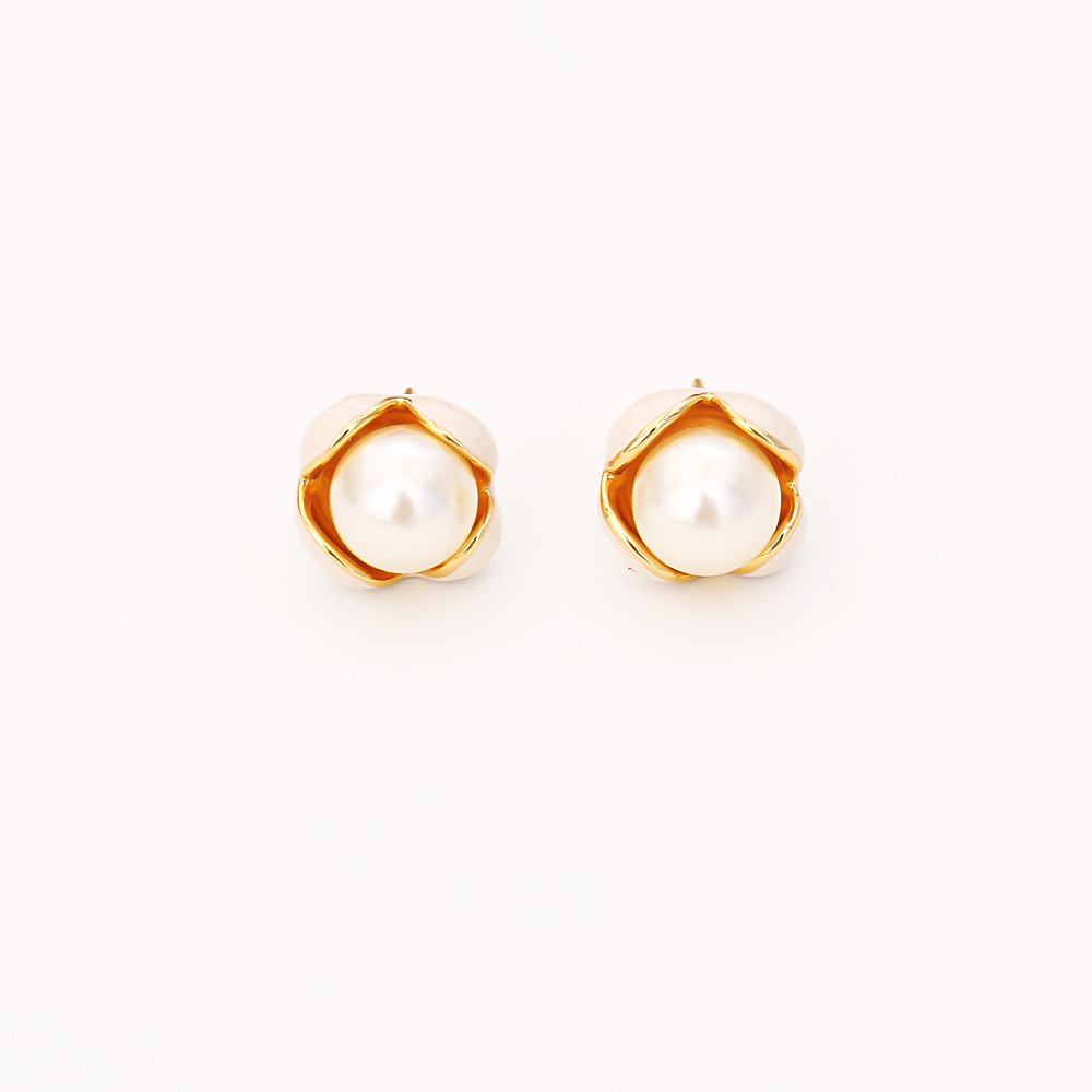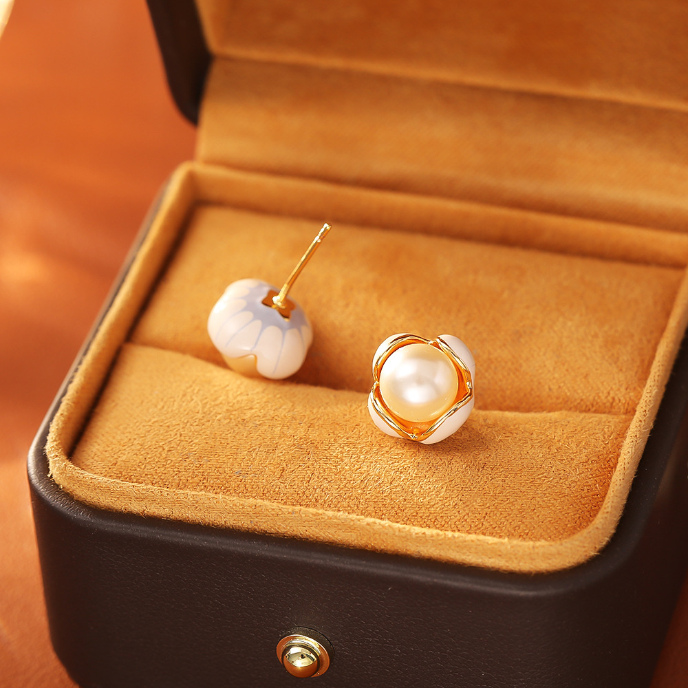 Boucles d'oreilles d'eau douce de Perle , laiton, avec perle d'eau douce cultivée, fleur, Plaqué d'or, bijoux de mode & pour femme & émail, Vendu par paire