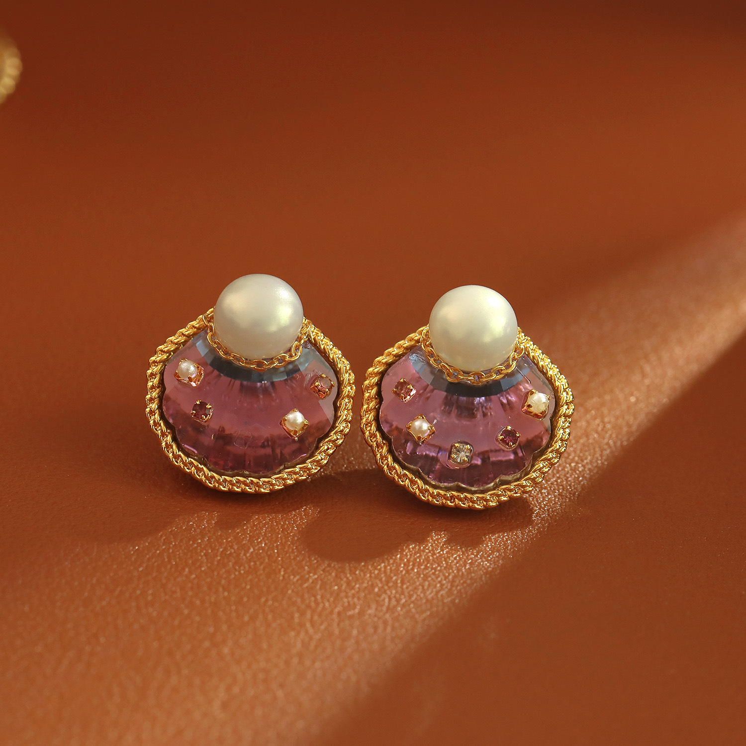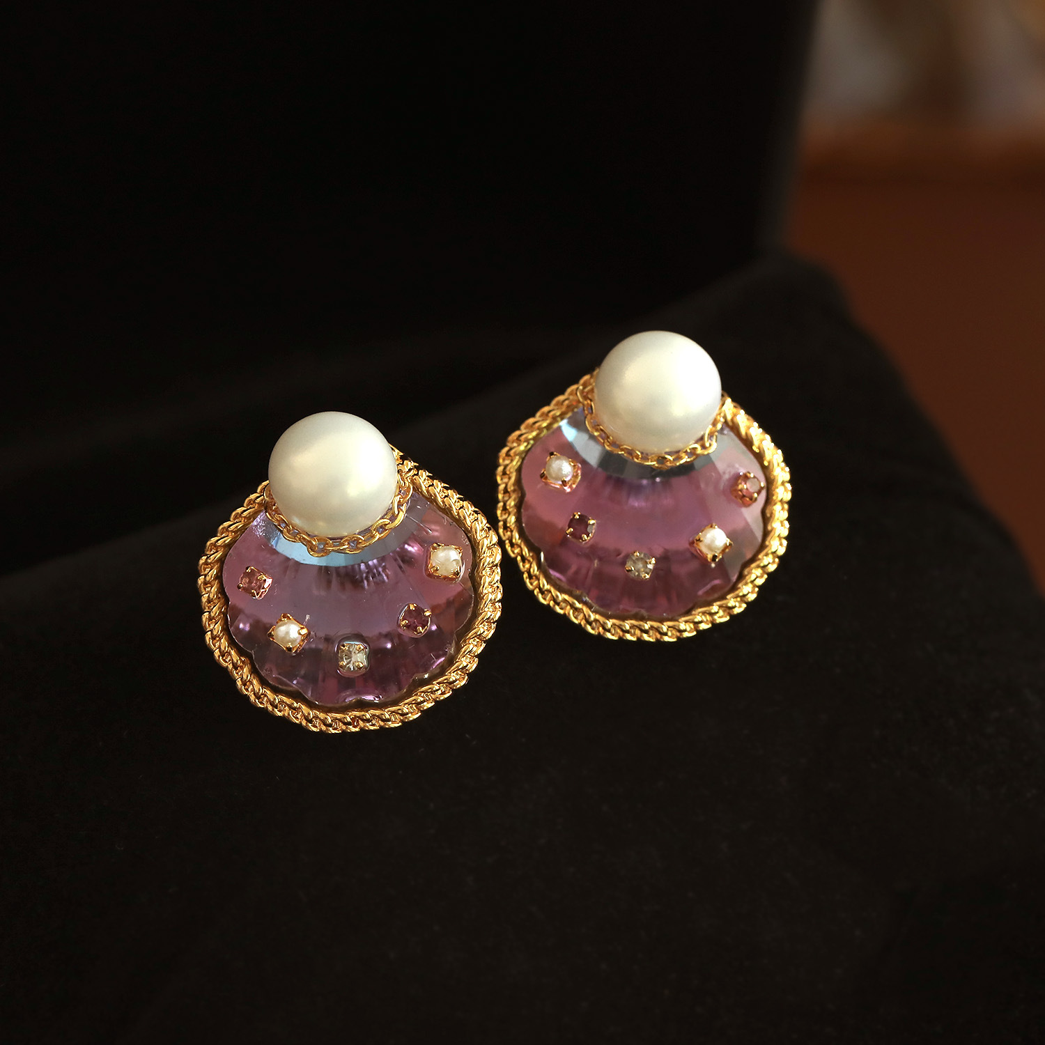 Boucles d'oreilles d'eau douce de Perle , laiton, avec perle d'eau douce cultivée & cristal, Plaqué or 18K, bijoux de mode & pour femme, 19x20mm, Vendu par paire